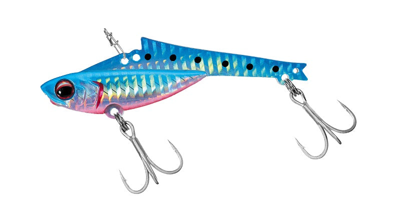 The Daiwa 45g Bull Steel Blade Bait is a saltwater lure that lives up to its confident name. Cast and retrieved or dropped and pumped, BULL STEEL emits a sonic typhoon that fish can hear from afar. In fact, you can adjust the sweet siren song by tying to one of its two cutouts, each creating a unique underwater dining experience for the fish. BULL STEEL's attractiveness is further enhanced with electric flashes as it shakes violently from side to side, and its baitfish inspired silhouette is instantly recognized by reef fish and pelagic species alike. Fished vertically, employ a generous rip followed by a limp line freefall. BULL STEEL rises with a tight sonic fury and descends with a distressed wide wobble that's recognized as a wounded member falling out of a bait-ball. DAIWA's new BULL STEEL performs exceptionally on snapper, grouper, blackfin tuna, amber jack, jack crevalle, yellowtail, and essentially all pelagic species.