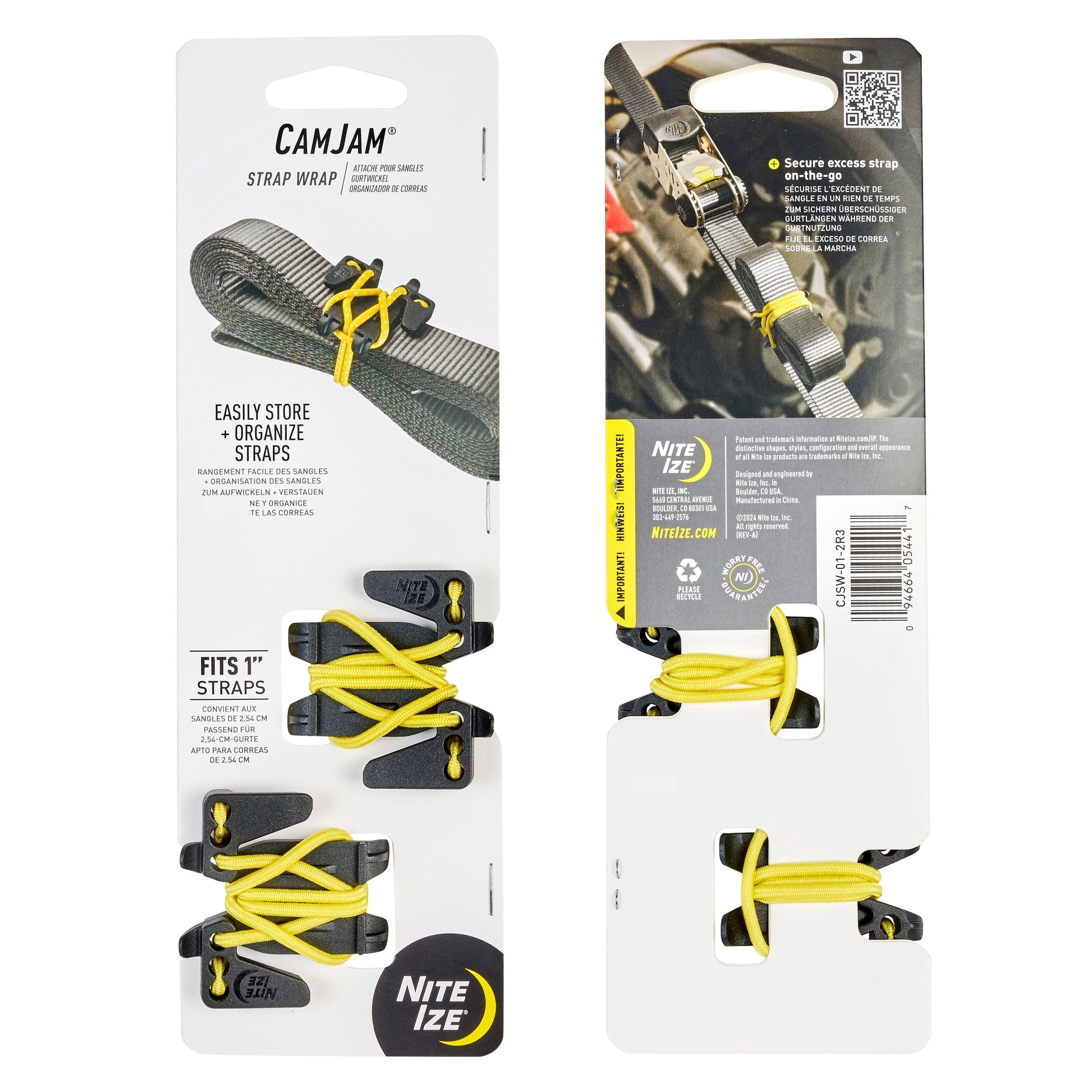 Tie up loose ends with the CamJam Strap Wrap. This easy-to-use tool features a lightweight body with an attached elastic cord, allowing you to wrap a tie down strap into a tidy bundle for easy storage. The universal design threads onto any strap up to 1” wide and features prongs to hold the strap in place. Alternatively, you can use the strap wrap on-the-move, securing excess strap under tension to prevent flapping.