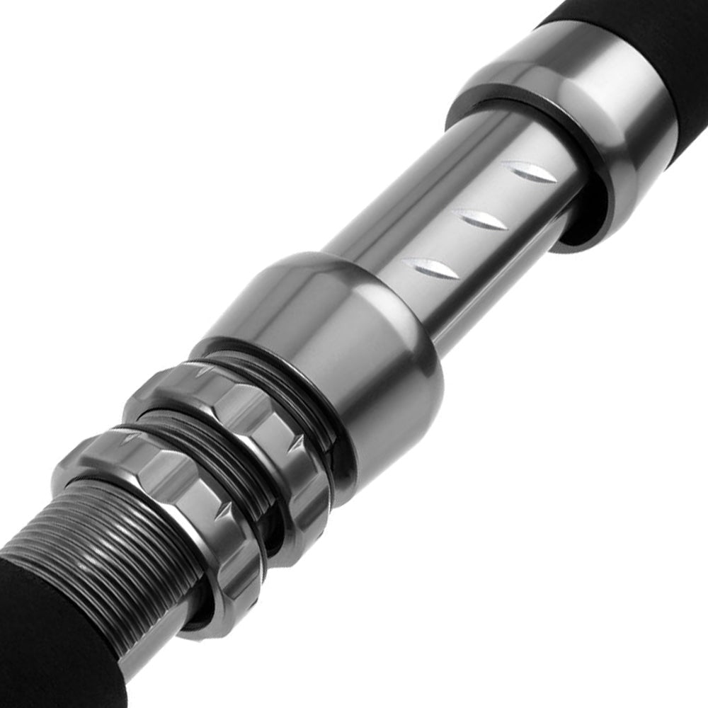 - Anodized aluminum reel seat with stainless steel hoods and custom locking ring