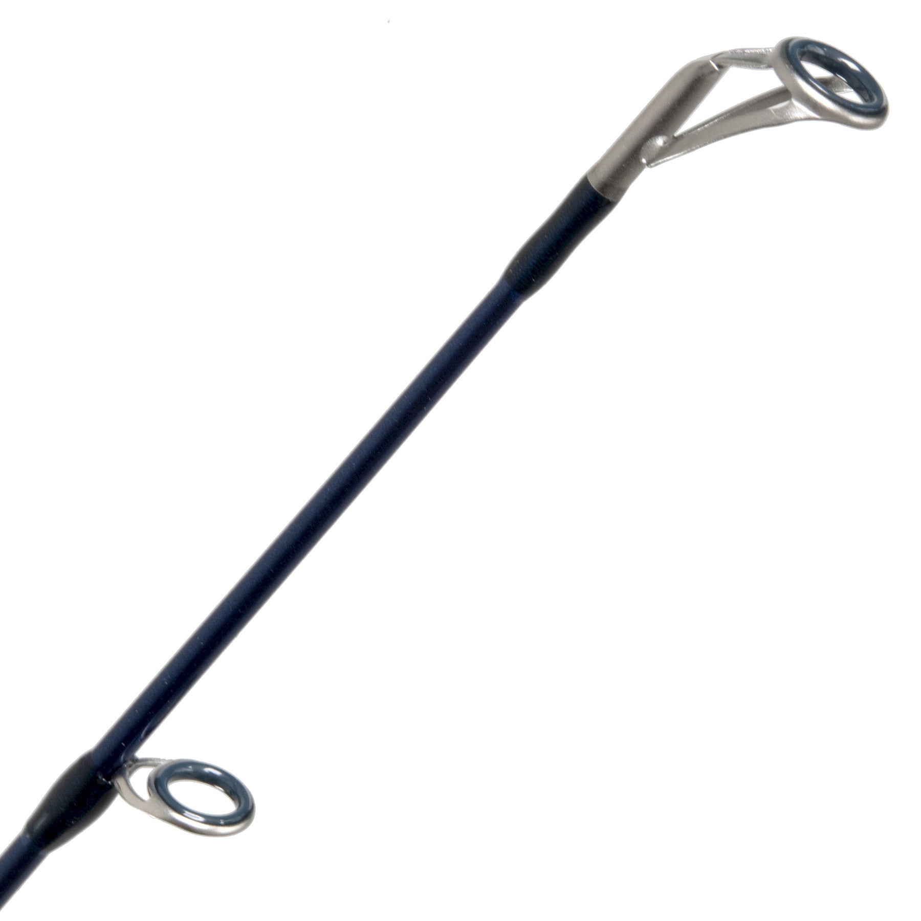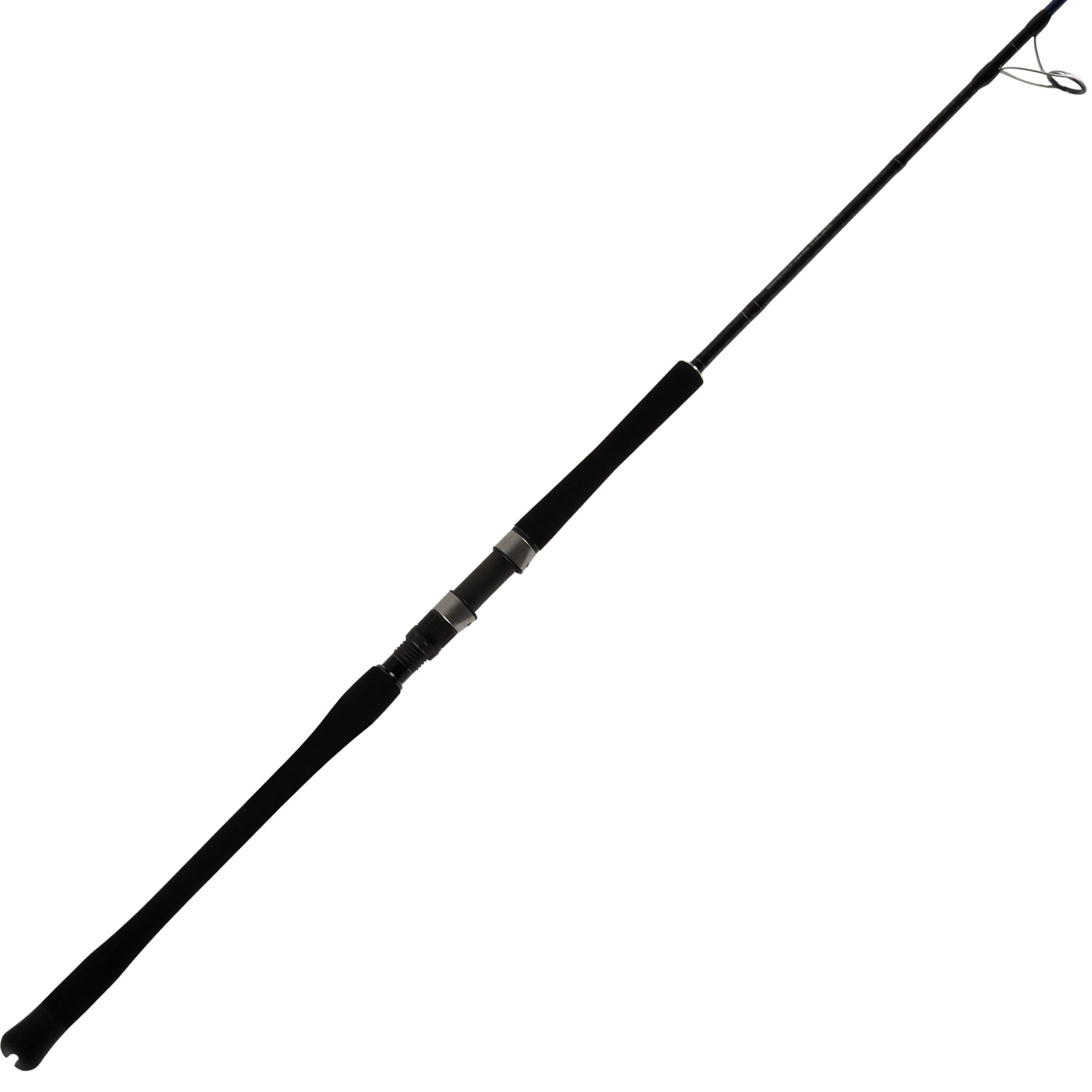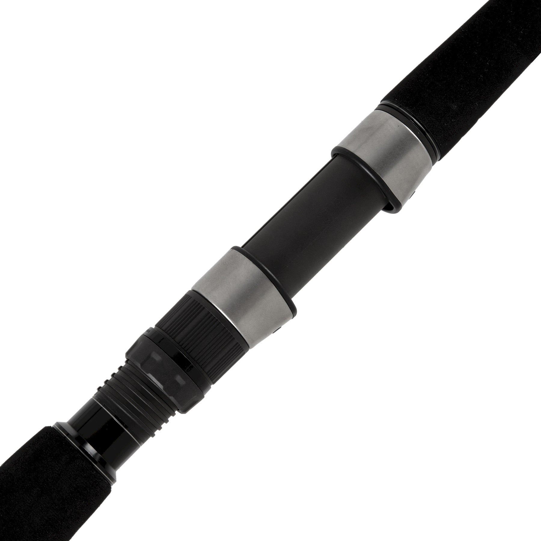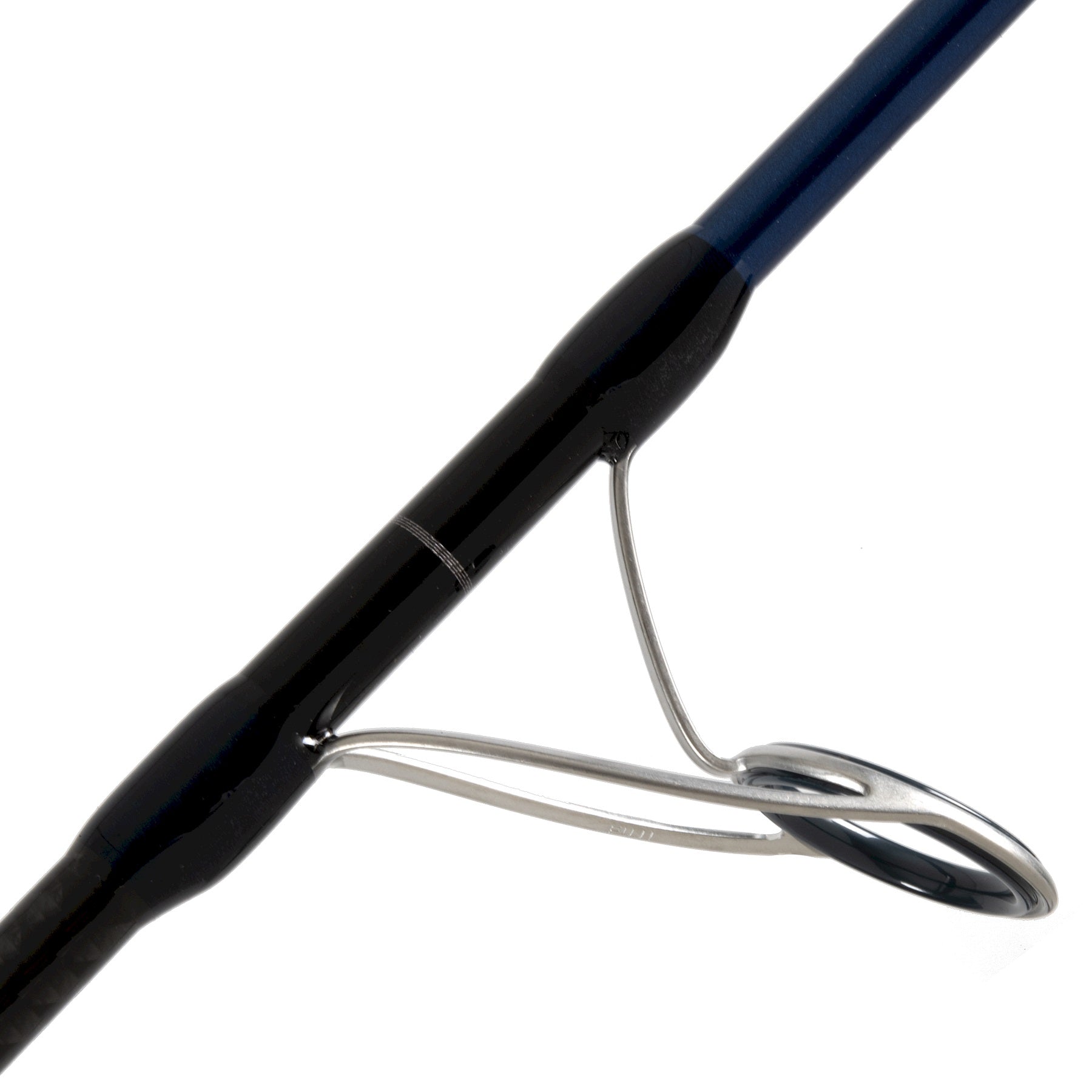 The Tsunami TSCSHDII-BBS771XH-B Carbon Shield II Big Bait Spinning Rod features feather light IM7 graphite and a D16 nanotech construction blank for increased strength. The light and durable EVA foam grips provide a comfortable grip while the durable hard vinyl gimbal provides sure rod control. This rod has a genuine Fuji carbon and stainless steel reel seat with a back stop. It also features a genuine Fuji fazlite braid ready stainless steel frame, tangle free guides, and a braced frame Fuji fazlite ring tip top. The guides are double wrapped and have an epoxy coating.