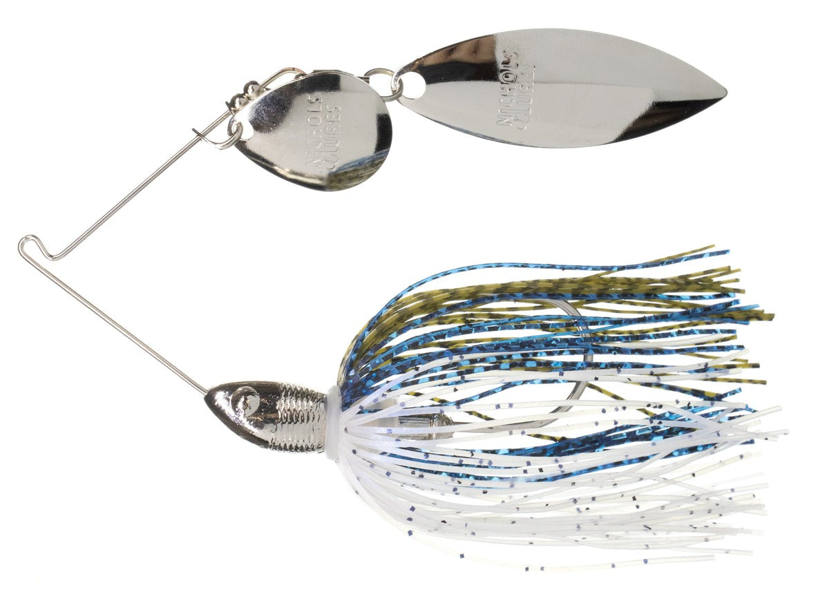 The Nichols Lures 1/2 oz. Catalyst Tandem Spinnerbait is designed around an Owner Hook and plated in either 24K gold or nickel for ultimate durability and style. Engineered with G3 level curvature and finished with a Pro-Tie skirt and custom Nichols Lures Colorado/willow blades, the Catalyst Spinnerbait is the pinnacle of form and function.