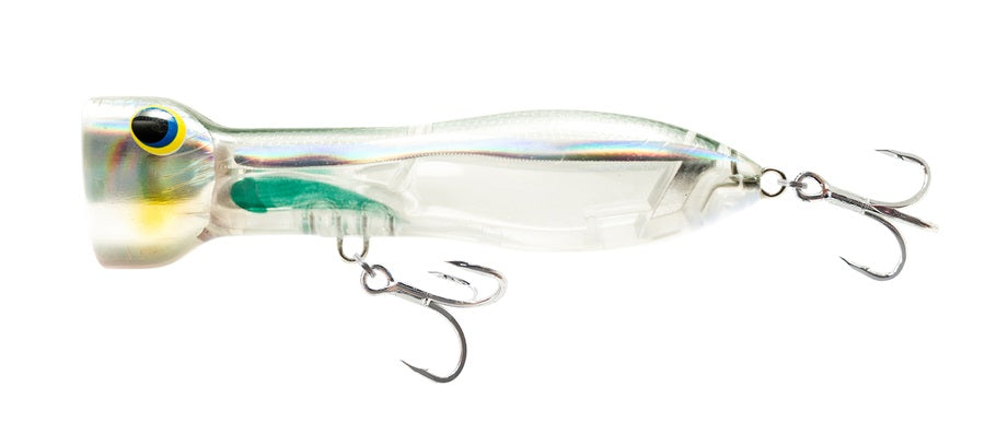 The Nomad Design 3.75" Chug Norris 95 Popper was designed for ease of use and features a unique "walk the dog" surface action which allows it to be worked super slow to entice a bite or faster with bigger pops. Super easy to pop, this popper hangs in the water and will not 'pull out' when popped. Thanks to the unique body shape and hydrodynamic design, it doesn't take much effort to get a big pop. It can also be worked with subtle small pops and twitched across the surface. This is a great choice for all inshore saltwater species, ranging from Striped Bass to Redfish, Seatrout, Jacks, Bluefish, and Barracuda. Not only is this popper super tough and durable, but it also comes in a variety of highly detailed colors.