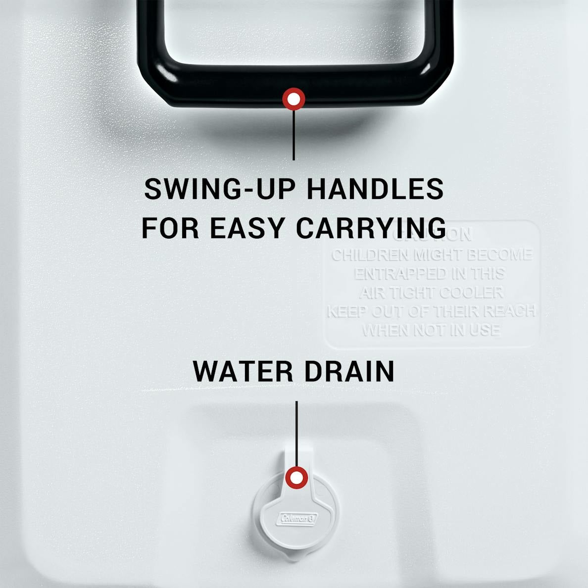 Inspired by our Wichita roots and the people who work there, the Coleman® Classic Series of hard coolers brings uncompromising quality and a legacy of craftsmanship and adventure wherever you take them. Food and drinks stay chilled longer with the Classic Series 120-Quart Marine Hard Cooler, which Keeps the Ice™ up to 6 days. Carrying a full load? Enjoy easier lifting with the swing-up side handles, then have a seat on the closed lid. Not to worry, cup holders built into the lid will keep your drink close and prevent spills. Made to withstand the challenging conditions of being on the water, the UVGuard™ coating helps protect the cooler from damaging sun rays. The stainless steel hardware prevents rusting and corrosion—extending the life of the cooler. With room for up to 204 cans, there'll be plenty of space for food supplies and the weekend's catch on fishing trips.