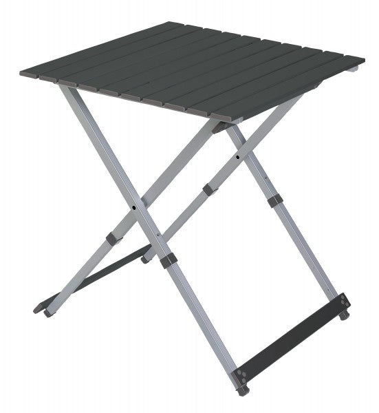 The Compact Camp Table 25 features a unique one-piece compact design. This table to folds to half the size of other camp tables. Designed with telescoping legs – just pull down legs for use; push up legs for storage.