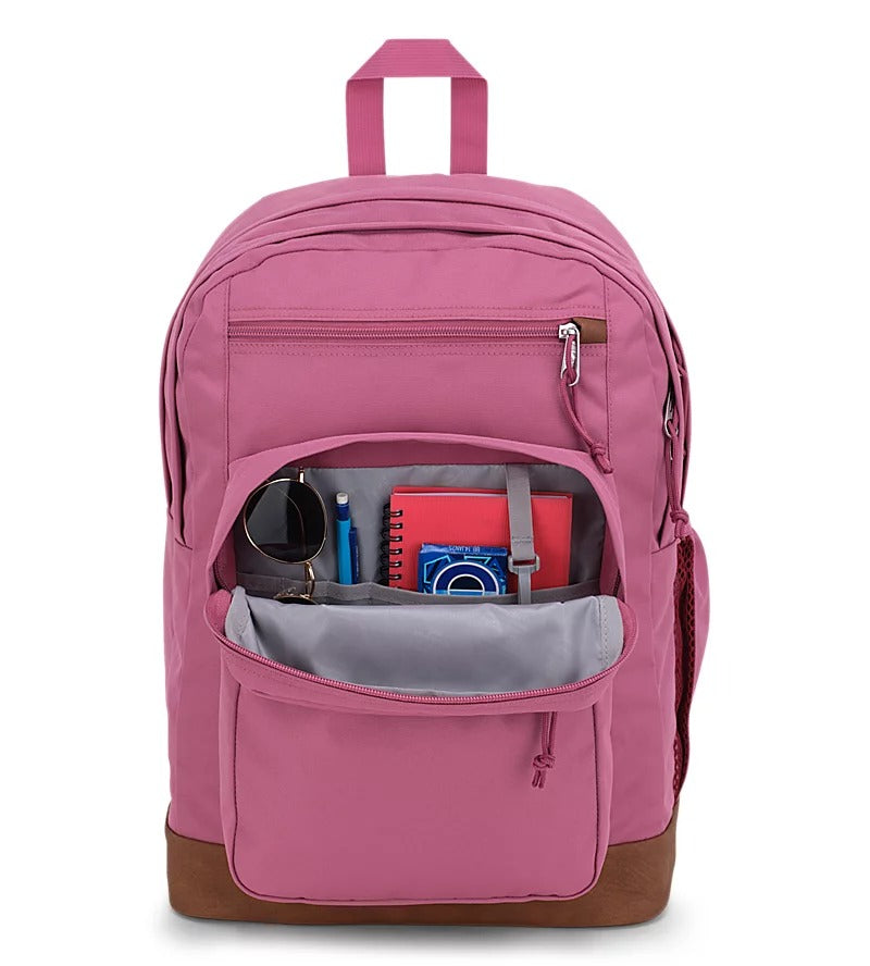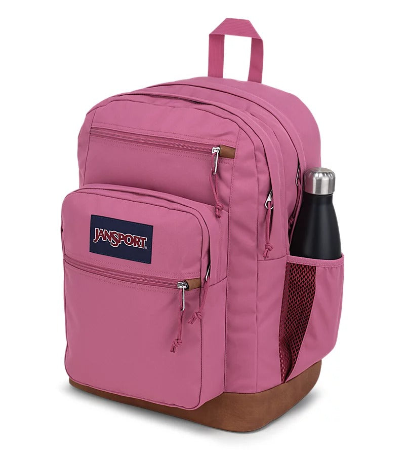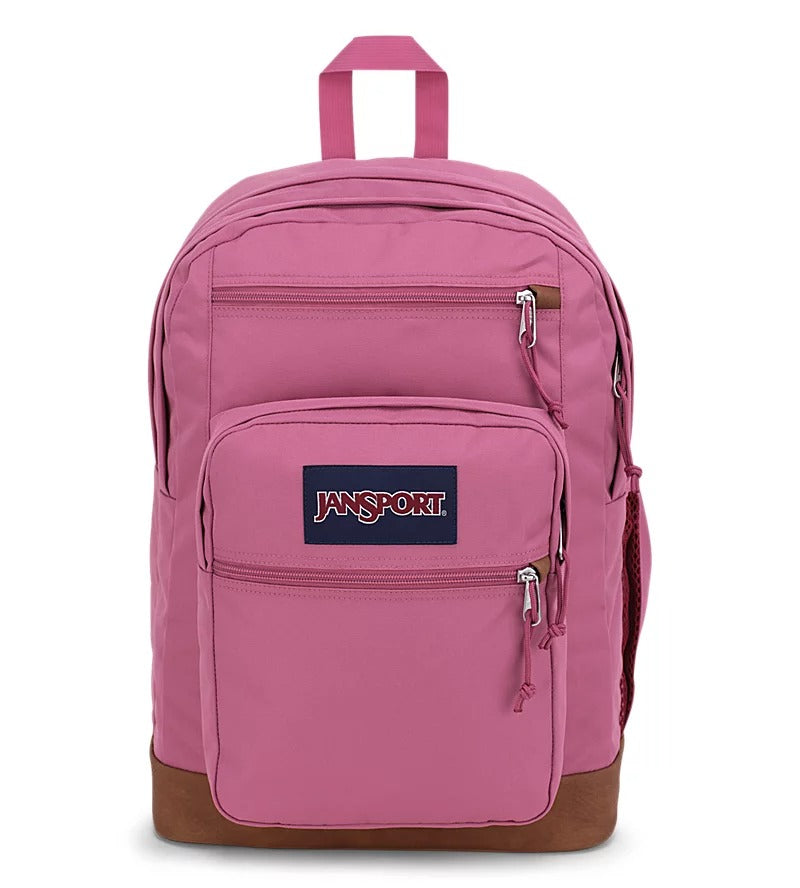 The JanSport Cool Student Backpack has all the great features of our Big Student, plus a sleeve for a 15 inch laptop and synthetic leather base and trim. Go ahead, say it: That's cool. It has two main compartments for optimal space, a side bottle pocket that stretches to fit large bottles, and more.