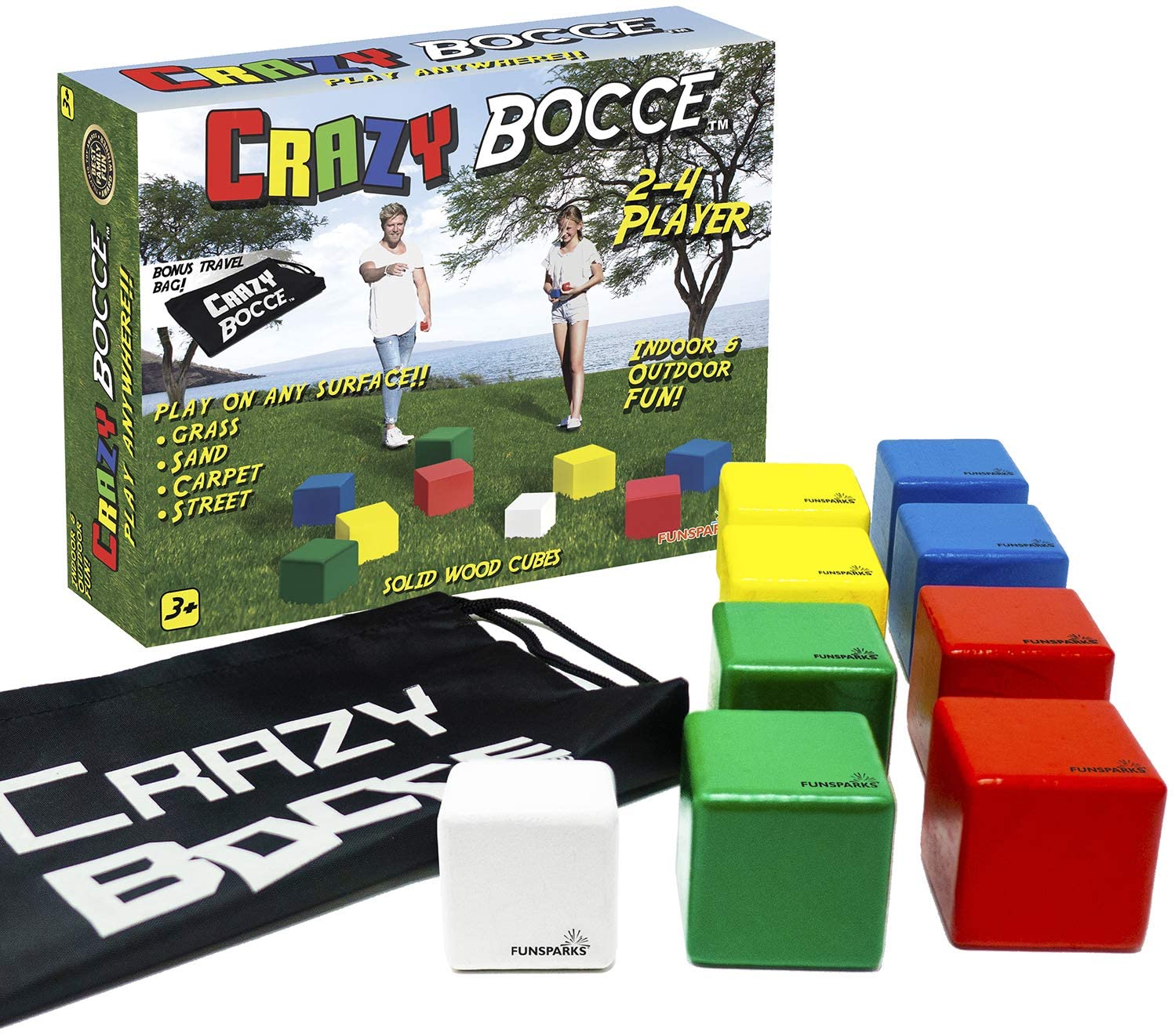 - Crazy Bocce is made with solid durable wood that is crack and damage resistant for long lasting fun