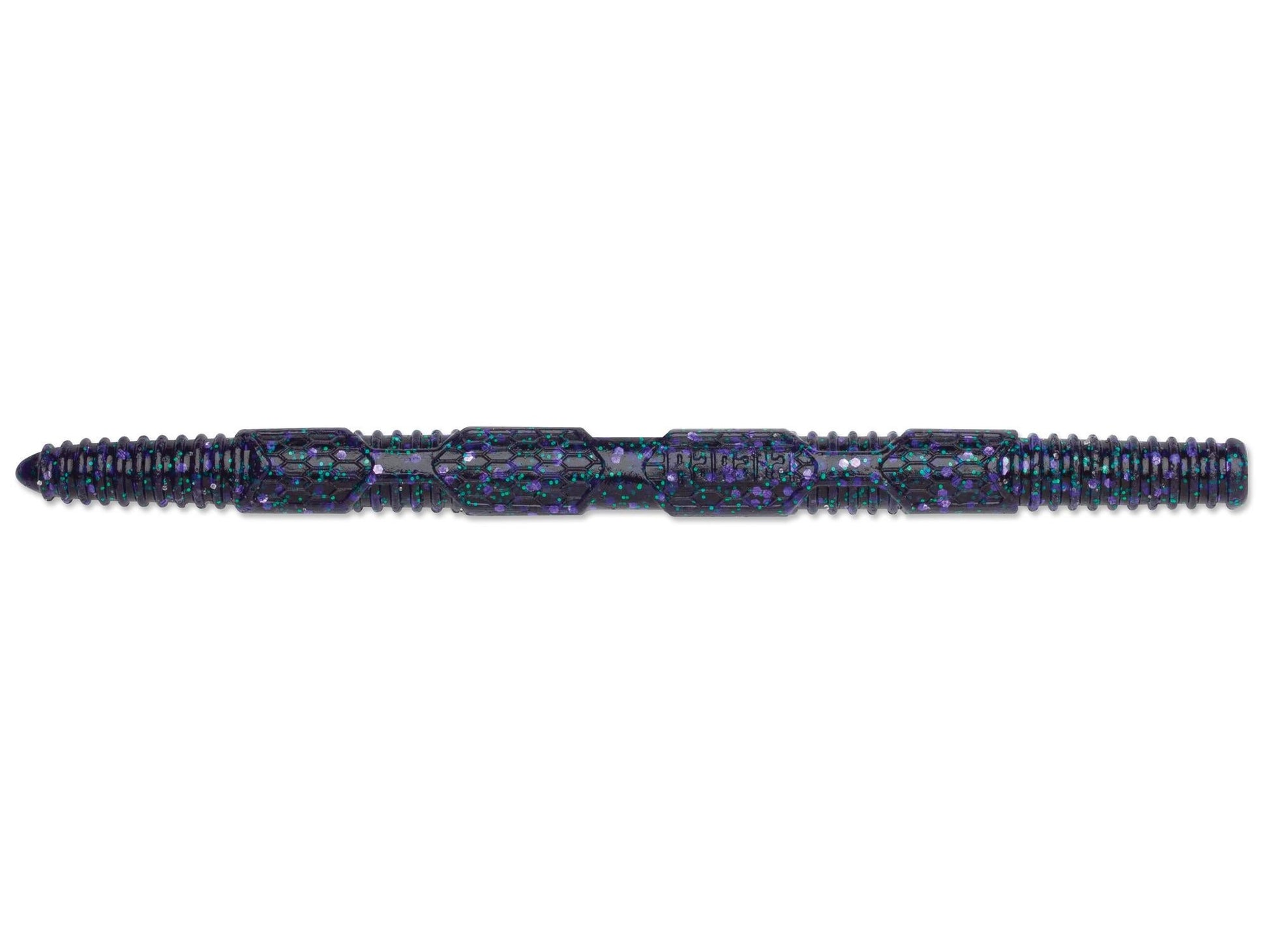 The Rapala 5" Pigstick Worm features a captivating shimmy as it descends, which entices bass to come play fetch. The extra salt content in this bait provides excellent "shimmy" action on the fall. There is an integrated slot for VMC Crossover Rings to maximize usage when Wacky or Neko rigging. The Pigstick features Smart Injection Technology, which combines custom combinations of color, flake, salt, and scent, which are added precisely where needed for the perfect presentation.