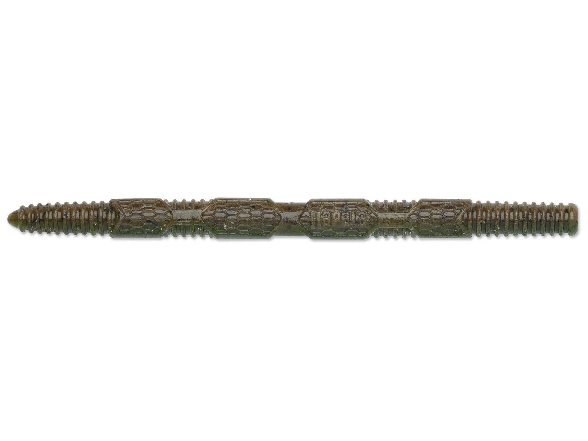 The Rapala 5" Pigstick Worm features a captivating shimmy as it descends, which entices bass to come play fetch. The extra salt content in this bait provides excellent "shimmy" action on the fall. There is an integrated slot for VMC Crossover Rings to maximize usage when Wacky or Neko rigging. The Pigstick features Smart Injection Technology, which combines custom combinations of color, flake, salt, and scent, which are added precisely where needed for the perfect presentation.