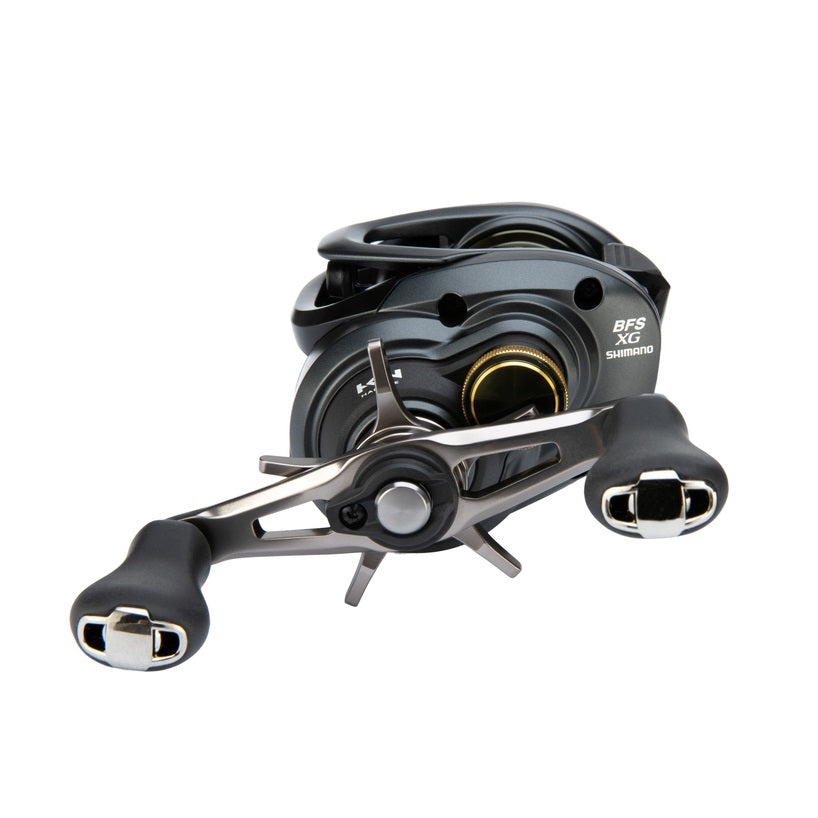 The new Shimano Curado BFS XG Left Baitcasting Reel expands the Curado lineup of low-profile reels while redefining finesse fishing for tournament anglers. Inspired by the Japanese Domestic Market (JDM), the new Curado BFS utilizes an ultralightweight shallow spool designed for thinner diameter lines to allow anglers to cast lightweight lures more effectively than traditional low-profile models. The Curado BFS incorporates Shimano's Finesse Tune Brake (FTB) system to reduce the spool's weight by moving the braking unit from the spool to the palming side-plate. The result: the spool takes minimal force to turn and allows anglers to effectively cast lightweight tackle. Unlike traditional magnetic brake systems that maintain the same drag on the spool throughout the cast, Shimano's FTB capitalizes on the cast's centrifugal force and the magnetic brakes automatically adjust to slow down the spool only when braking is needed. Fully adjustable, anglers can fine-tune the FTB with the external dial or by adding or removing individual magnets as needed. The perfect antidote for picky fish, the Curado BFS is the ideal tool for anglers to downsize baits to increase their success on the water.