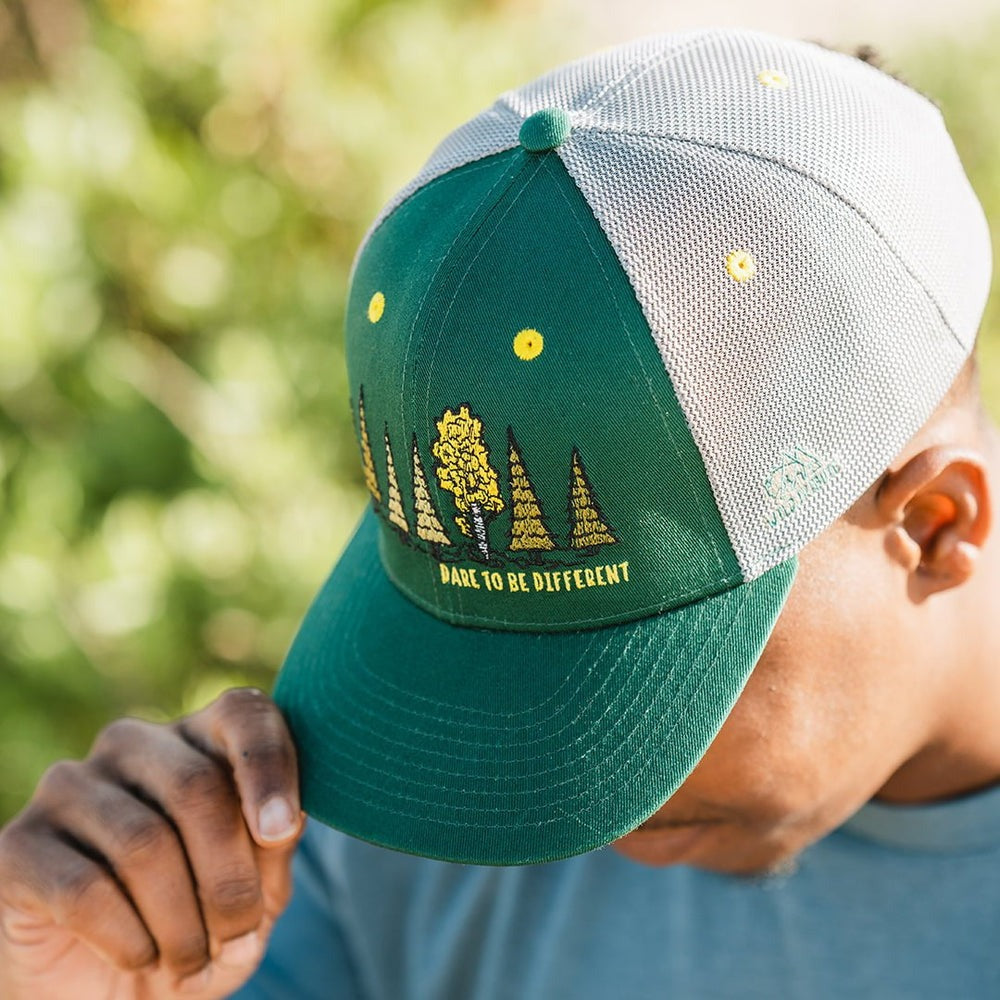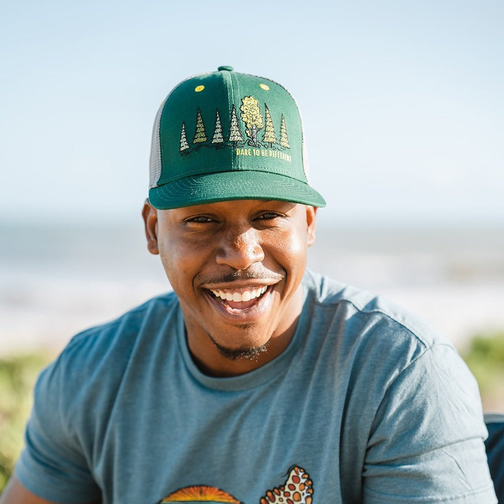 This hat is a structured 5-panel Trucker Hat with sublimated art on the front.