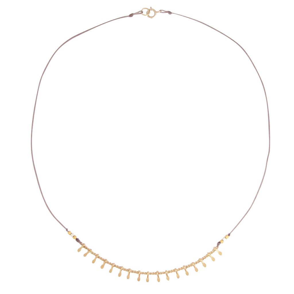 Contemporary and chic, the stamped chain necklace looks amazing layered with other necklaces and is a stylish statement alone. Sporty in function, there isn't anywhere you won't wear it. The mixed metals and neutral taupe cord color goes with everything.