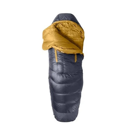 Disco includes a set of next-generation Thermo Gill™ vents on the chest to offer fine-tuned temperature control and a better outdoor sleeping experience. Each Gill features an interior and an exterior zipper with a draft-blocking intermediate layer, allowing several different configurations for dialing in the bag’s temperature without direct exposure to cold air. Our Blanket Fold™ draft collar at the neckline features a redesigned size and shape to further optimize sleep temperature. Tucked in, the Blanket Fold defiantly blocks any chill while mimicking the comfort of your bed at home. Pushed out, it helps dump excess heat instantly. Finally, Disco’s revamped design has baffles insulated with water-resistant, RDS-certified down, placed vertically along the torso for comfort and aligned horizontally below the waist to prevent down migration.