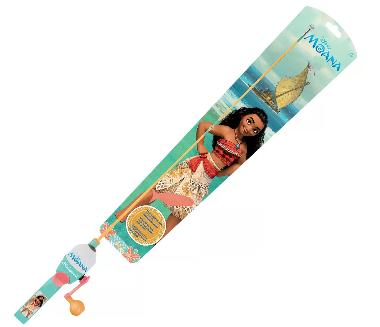Introduce your young angler to a lifetime adventure with her very own Shakespeare Disney® Moana® Spincast Combo. This is the perfect starter kit for any fisher-girl, as it includes a medium-power 2'6" fiberglass rod with durable aluminum-oxide guides, an easy-to-learn Size 5 spincast reel with multi-stop anti-reverse and Teflon® drag, a practice casting plug to help develop her skills, and of course her favorite Disney heroine, designed right in! Comes pre-spooled with 4-lb. line. For ages 4 and up.