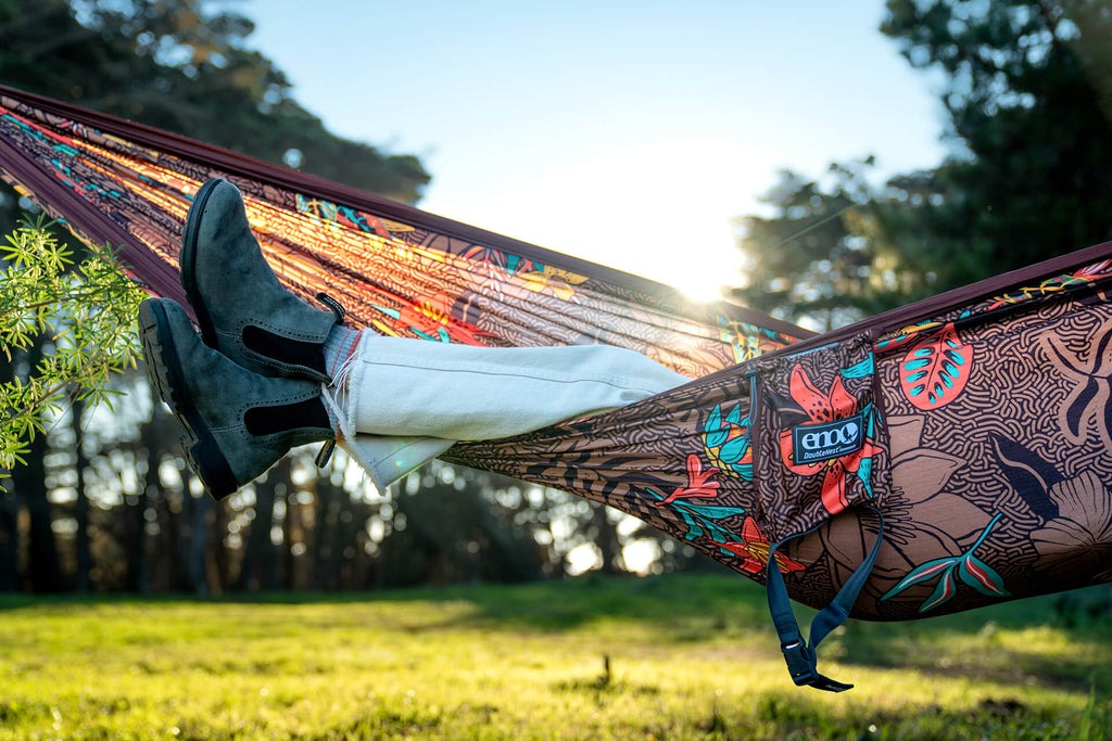 Brighten your adventures with the colorful and spacious ENO DoubleNest Hammock Print featuring durable yet soft FreeWave® fabric that delivers a sharable experience unlike any other.