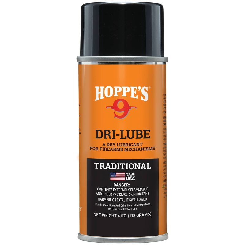 Hoppe's Dri-Lube reduces friction on metal and bearing surfaces without sticky oil or silicone.
