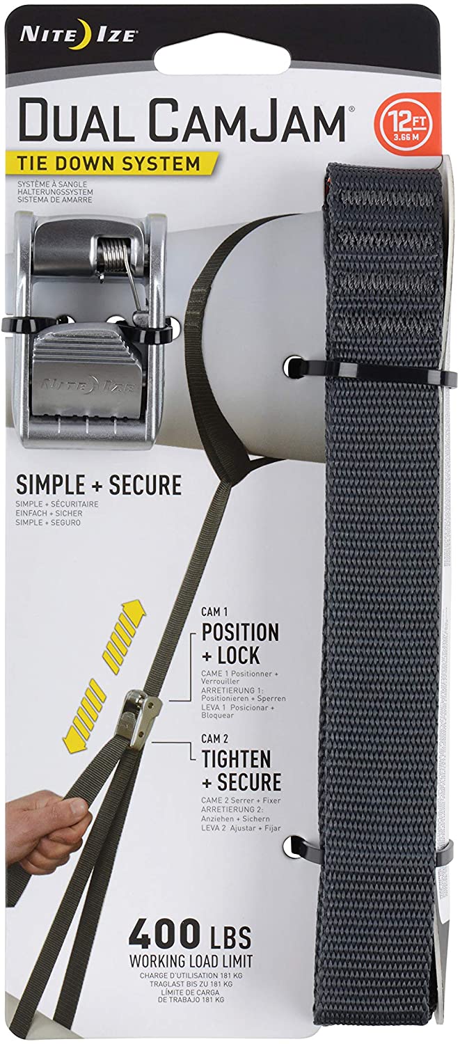 The Dual CamJam Tie Down System has been masterfully engineered to secure and lock down your equipment and gear. The innovative Dual CamJam buckle features not one but two cam locking mechanisms, one on each end of its zinc alloy body. The system also includes a high density 1" polypropylene webbing strap with an integrated bar tacked loop on one end. With the buckle independent of the strap and completely adjustable, this innovative system is the most versatile tie down you'll ever use.