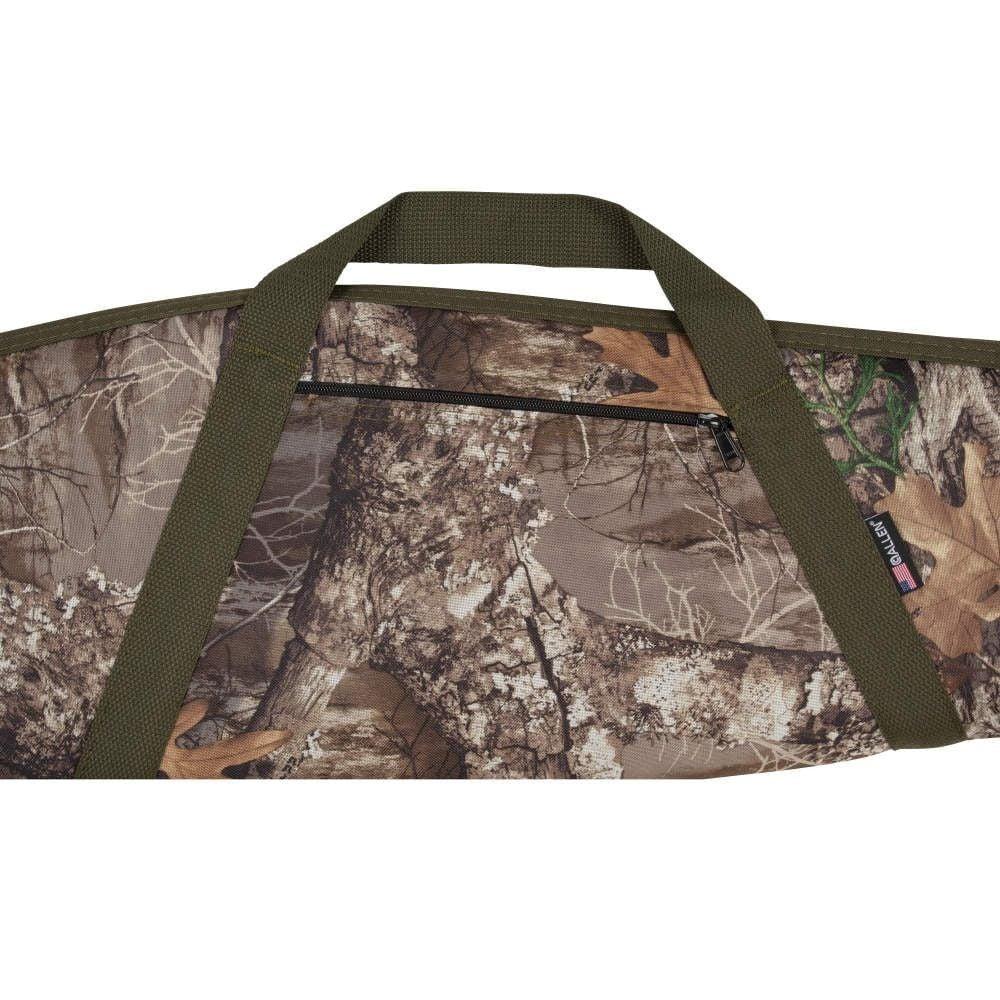 The Emerald Rifle Case by Allen is a 46-inch case in Realtree Edge and olive colored, rugged Endura fabric. This case also has dense foam padding, an easy clean, non-absorbent lining, and a hanging loop.