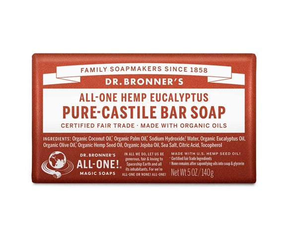 Breathe deep and refresh your senses with Dr. Bronner’s Eucalyptus Magic Bar Soap. Infused with pure eucalyptus essential oil, this true soap renews skin with a smooth feel. Made with Regenerative Organic Certified® oils, it creates a rich, smooth lather that rinses clean. No detergents, dyes, or added foaming agents. Vegan, Organic, and Fair Trade for peace of mind and a clean that’s good for you and the planet!