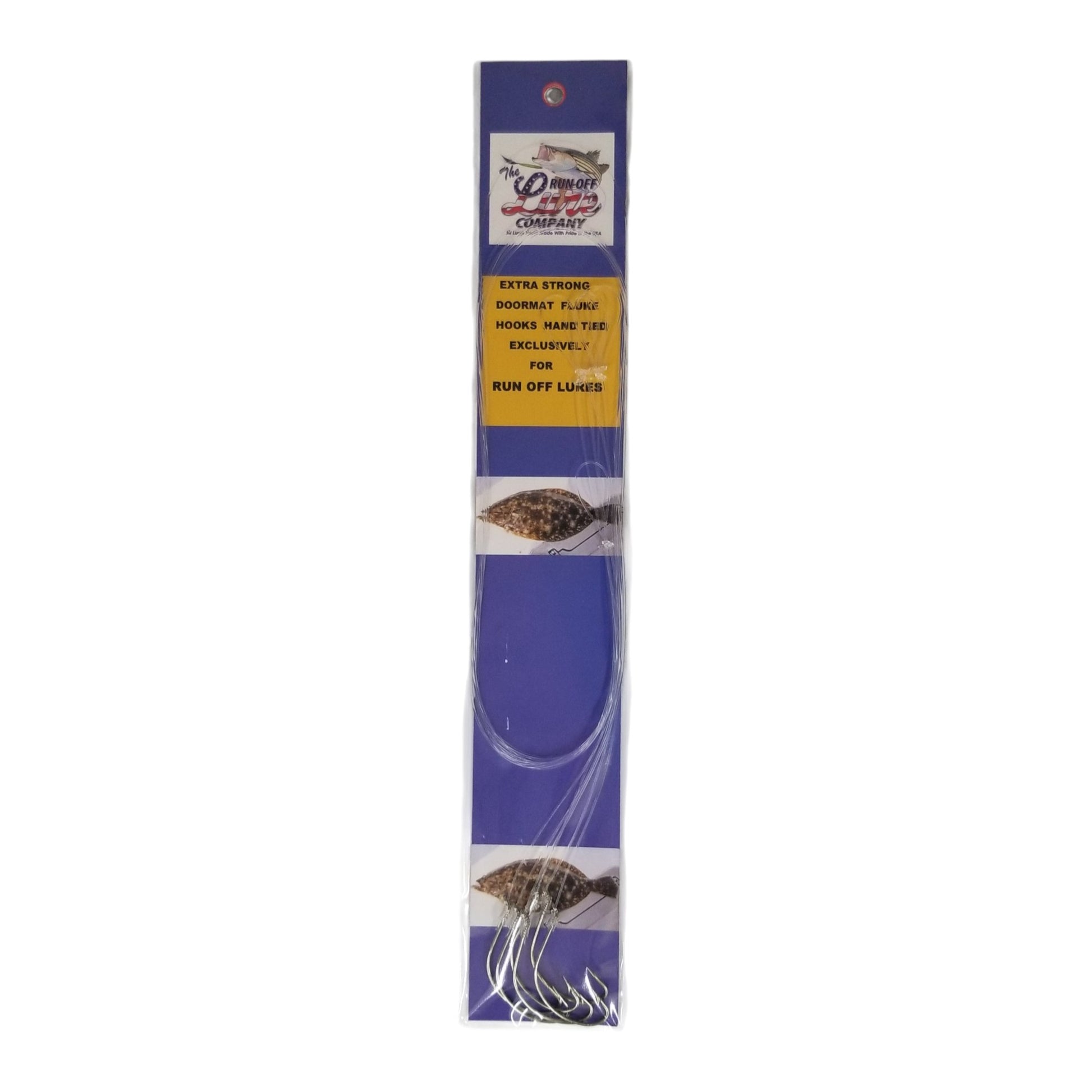 The Run Off Lures Extra Strong Doormat Fluke Snelled Hook features a #2 hook. This extra strong hook is a great choice when fishing for doormat fluke. This pack contains 6 hooks.
