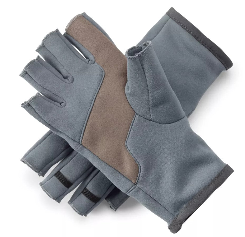Retain full dexterity when fishing and yet keep your hands warm in colder conditions wearing our four-way stretch fleece fingerless gloves. AX® Suede synthetic leather palm provides abrasion resistance and enhances grip. Keeps hands warm even when wet. In turbulence. Recycled polyester/spandex. Suede: Polyester/polyurethane. Washable. Imported. Unisex sizes S(6¾-7¼), M(7½-8), L(8¼-9), XL(9¼-10).