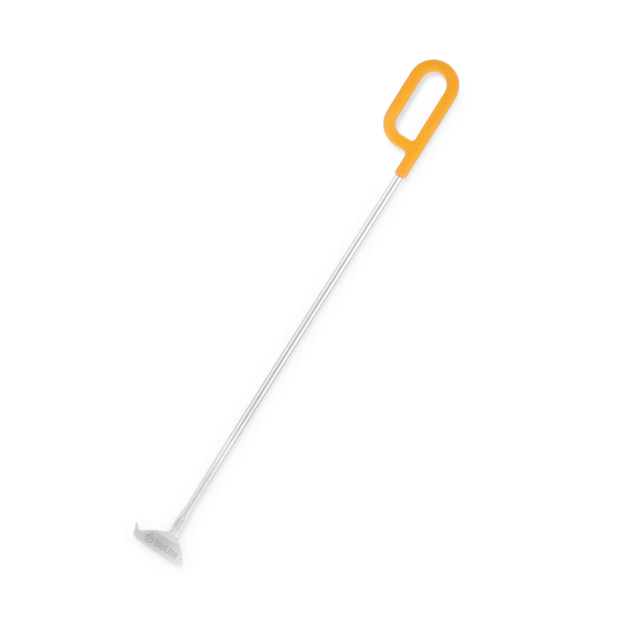 Designed for use with BioLite FirePit. The poker's broad flat edge helps stoke fuel and ensure logs are properly stacked for ideal airflow while the curved point hooks onto the FirePit's fuel rack for easy adjustment to the charcoal or wood setting.