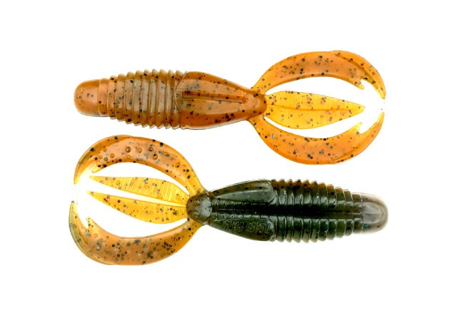 After a year of playing with prototypes, the 3.8'' Beast Coast Flippin' Delight Soft Bait has arrived. We genuinely feel this is one of the best flipping baits available. The bait has material/thickness in all the right areas, so you can expect 2 - 5 fish per bait prior to blowing out. Claws are designed to have a beautiful high speed flutter, and will never tangle thanks to the flanges that extend off of the claw body. The bait will display its trademark flap and flutter even when fished on a 1/4 Oz weight! Formulated with our neutrally buoyant (but dense) custom plastic & loaded with a special salty formulation of Shad, Garlic, and Crayfish Oil.