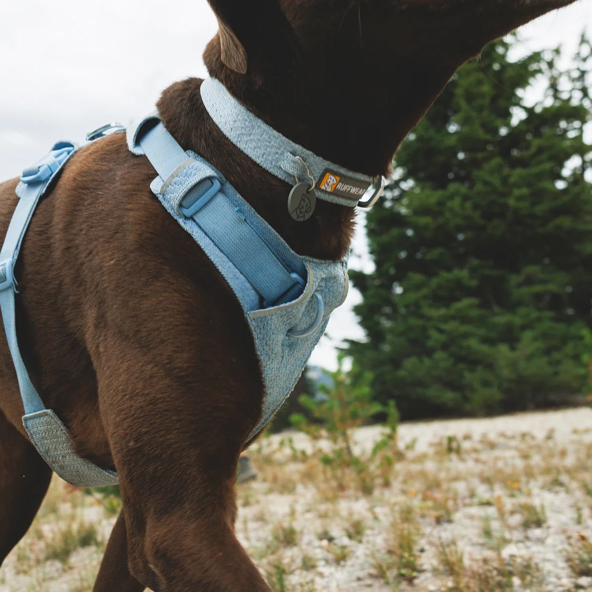 The Front Range Flex Dog Collar is our soft, flexible collar inspired by the knit materials used in athletic footwear. It’s built with an engineered knit webbing that conforms to and moves with your dog’s neck for exceptional comfort. Ruffwear’s trusted aluminum V-ring provides a secure leash attachment point while the separate integrated ID attachment point minimizes bulk, keeping the collar light and streamlined for a barely-know-it’s-there fit. The Front Range Flex Collar takes everything you love about our best-selling Front Range Collar and delivers it in a lighter, more agile design for high-energy adventures.