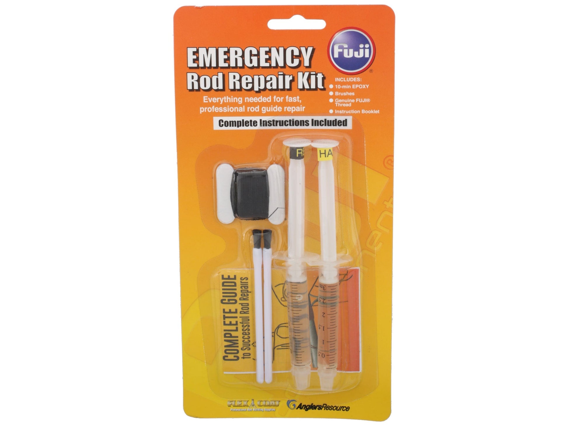 The Anglers Resource Fuji Emergency Rod Repair Kit has everything needed to replace 6-10 guides depending on size. Specially formulated 10-minute Flex Coat finish assures quality repairs in minutes, not hours. Includes Fuji brand Ultra POLY Thread, craft brushes and complete instructions for professional quality results.