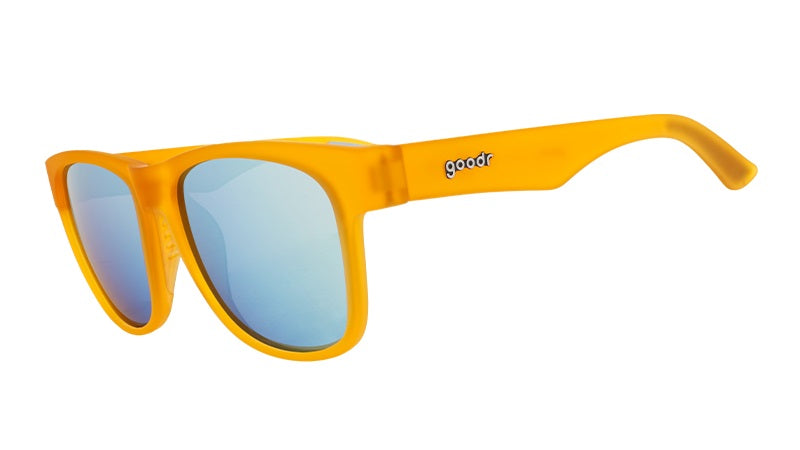 Imagine our chagrin when we showed up to Sasquatch's gold-digging party totally dolled and gussied, thinking we were going hunting for rich benefactors, only to find out he meant literally digging for gold. (Now that we think about it, it did seem kind of odd that he told us to meet him by the stream in the woods. UGH!!! There isn't even bottle service out here!!!) At least these light orange BFG Gold Digging With Sasquatch frames fit our cryptid friend's large noggin. And they'll fit yours too. Au snap.