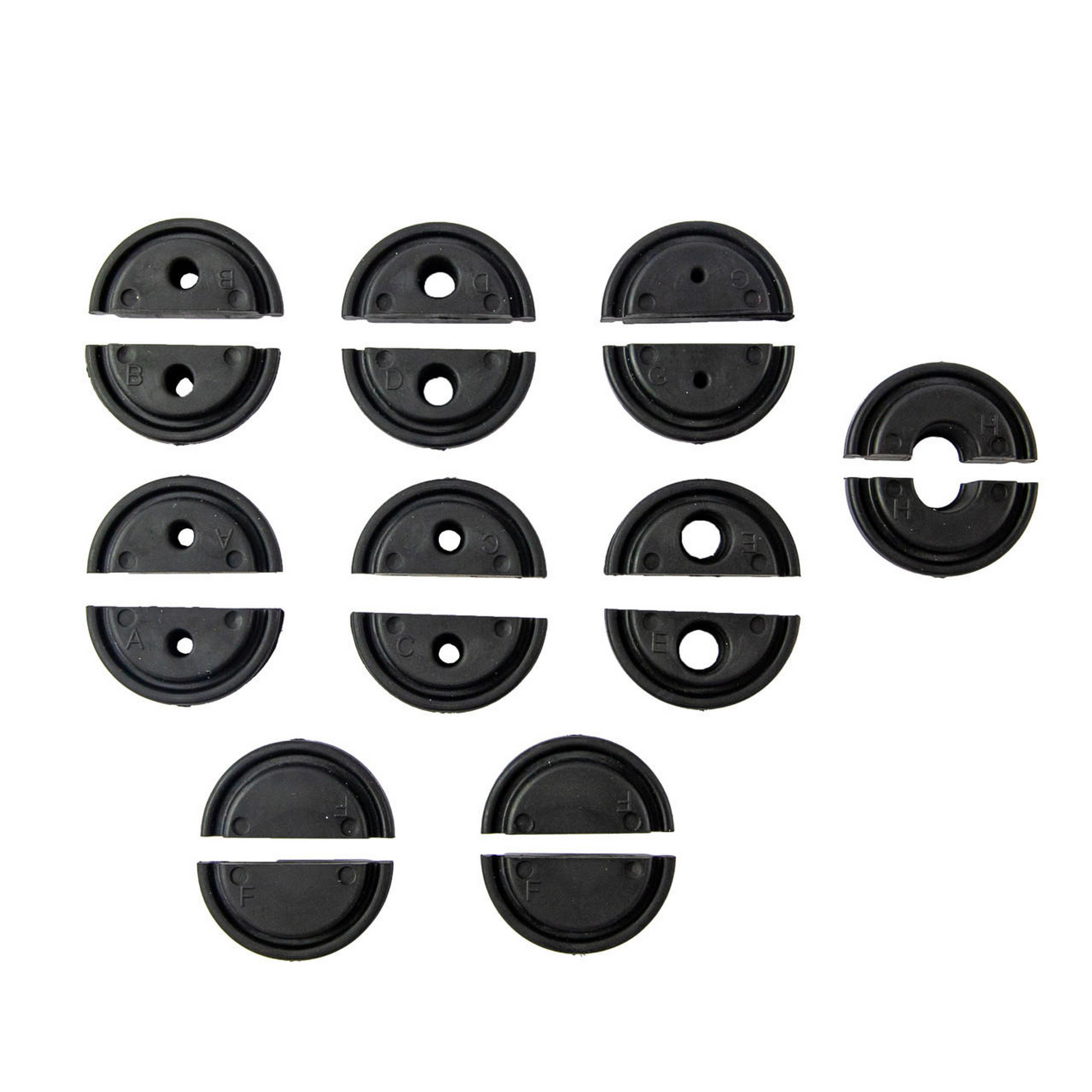 The YakAttack GridLoc Through Hull Wiring Kit is perfect for popular removable fish finder pods on kayaks as well as other applications where wires are needed to be ran through the hull of a kayak or boat. It is also compatible with the GridLoc Mounting Platform featured on the BlackPak Pro, which opens up the possibilities for many more applications like using your BlackPak Pro as a battery box for your motor, actions cameras, etc. The installation does not require access to the backside of the install area, but does require a 1" hole. Included are 14 rubber inserts with common hole sizes ranging from 0.08” to 0.389” in diameter, 4 blank inserts, 2 nylon grommets, and 2 sets of hardware. If your install requires more than 1” of clearance to run wires or connectors the GridLoc Through Hull Wiring Kit XL version (1.5” hole) of this product would be the best option. For a waterproof seal, marine sealant is required. This is an updated version of our original Through Hull Wiring Kit as compatibility with the GridLoc hole pattern was added to this new version. In addition we added 2 more blank inserts and 2 smaller 0.8" inserts for smaller wires.