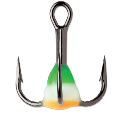 The classic VMC® 9650 round bend treble is embellished with a durable epoxy resin infused with a choice of five Ultra Glow colors that stay charged for up to 15 minutes. Change out to this hook on your favorite spoons and lures for increased action, all-season long.
