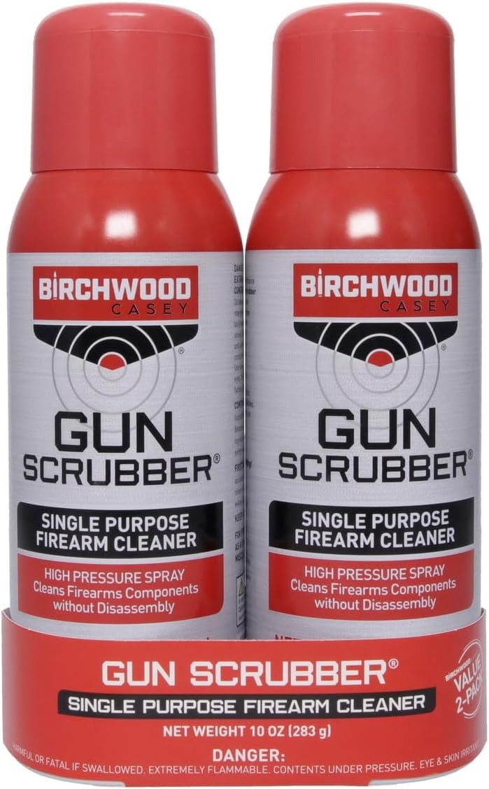 Cleaning your firearm just got a whole lot easier and faster thanks to Birchwood Casey’s Gun Scrubber Firearm Cleaner. Gun Scrubber Firearm Cleaner is a pressurized, fast-evaporating cleaner that effectively cleans internal metal firearm parts and firearms. While safe for firearm usage, the solvent may harm finished surfaces, plastics, laminates, composites, rubber grips, or other materials used in the construction of today’s firearms.