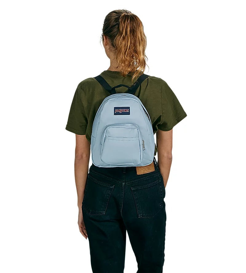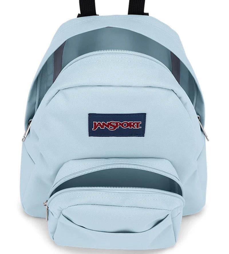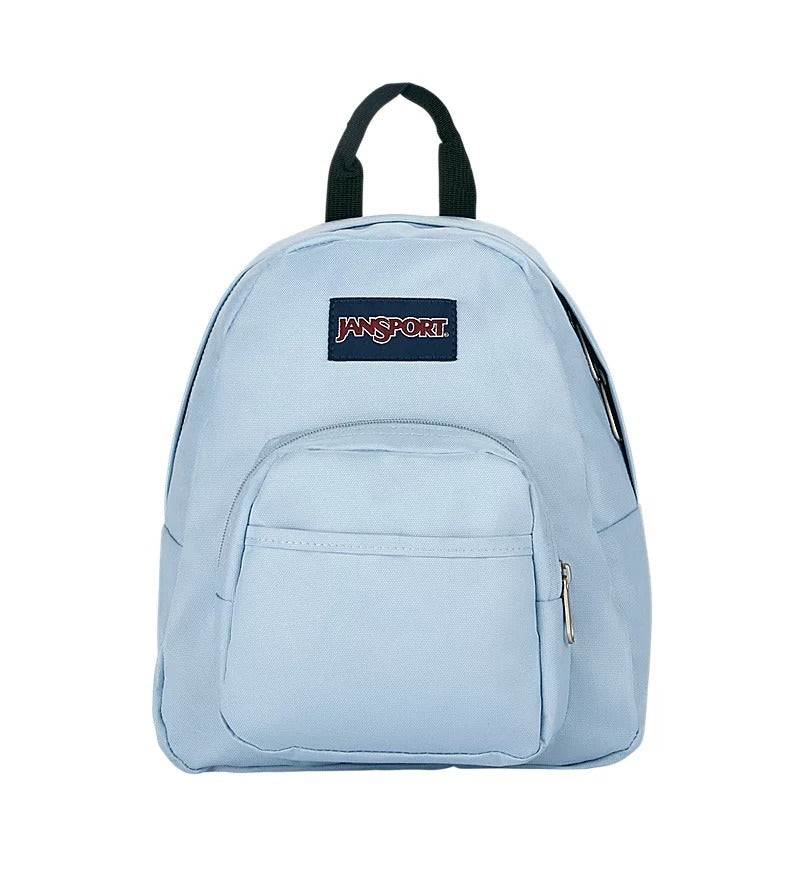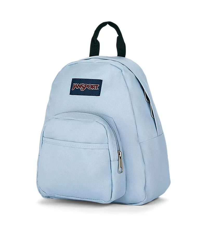 Small and light, the JanSport Half Pint Mini Backpack is the perfect throw-on-and-go backpack. Features include a front utility pocket, key clip, webbing shoulder straps, and a webbing grab handle on the top.