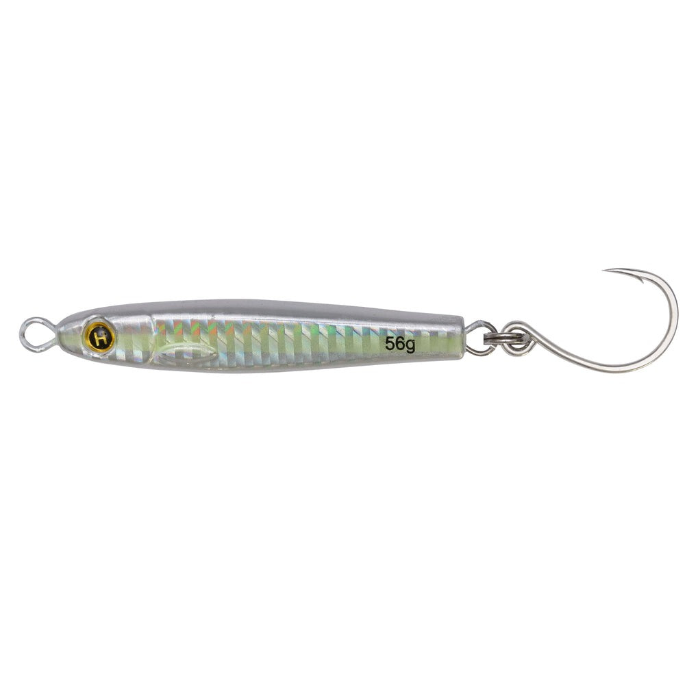 The Hogy Lures Heavy Minnow Jig weighs 2 oz. and is 3" in length. To make these jigs, Hogy took the molds from their most popular sizes of Epoxy Jig lures, wrapped them in HD holographic finish, and gave them a heavy metal core. These jigs are perfect players to have in your bull-pen to deal with heavy winds or when fish are holding in deeper water.