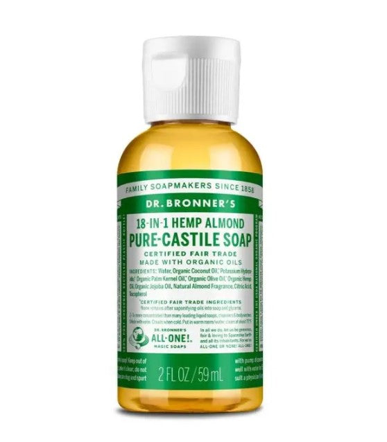 Warm, comforting and slightly sweet—like marzipan or amaretto! Our Almond Pure-Castile Liquid Soap is concentrated, biodegradable, versatile and effective. Made with organic and certified fair trade ingredients. Organic hemp oil is now sourced in the U.S. following hemp legalization! Packaged in a 100% post-consumer recycled bottle. All-One!