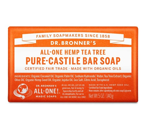 Purify and refresh with Dr. Bronner’s Tea Tree Magic Bar Soap, made with organic tea tree essential oil to deeply cleanse and clarify skin. This Magic Soap creates a rich, smooth lather that rinses clean, leaving behind a fresh, invigorating feel. Made with Regenerative Organic Certified® plant-based oils, it’s crafted with organic, ethically sourced ingredients—no detergents, dyes, or added foaming agents. Vegan, Organic, Fair Trade, and EWG Verified—because clean skin starts with clean ingredients.