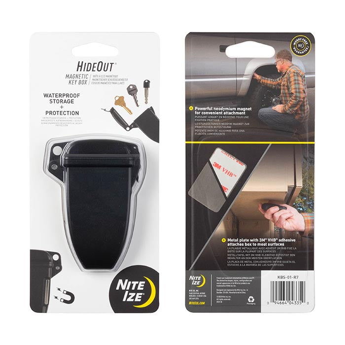 This isn't your parent's key hider, but a whole new world of high-quality, waterproof magnetic storage. Featuring two powerful neodymium magnets, the HideOut won't leave you wondering if it's still attached beneath your car. With a watertight seal, this durable magnetic container is perfect for hiding keys and more under your vehicle and around your home without worrying about whether the elements will damage its contents. An included metal plate with 3M VHB adhesive allows the HideOut to be attached to non-metal surfaces, like under wooden decks, plastic tables and more.