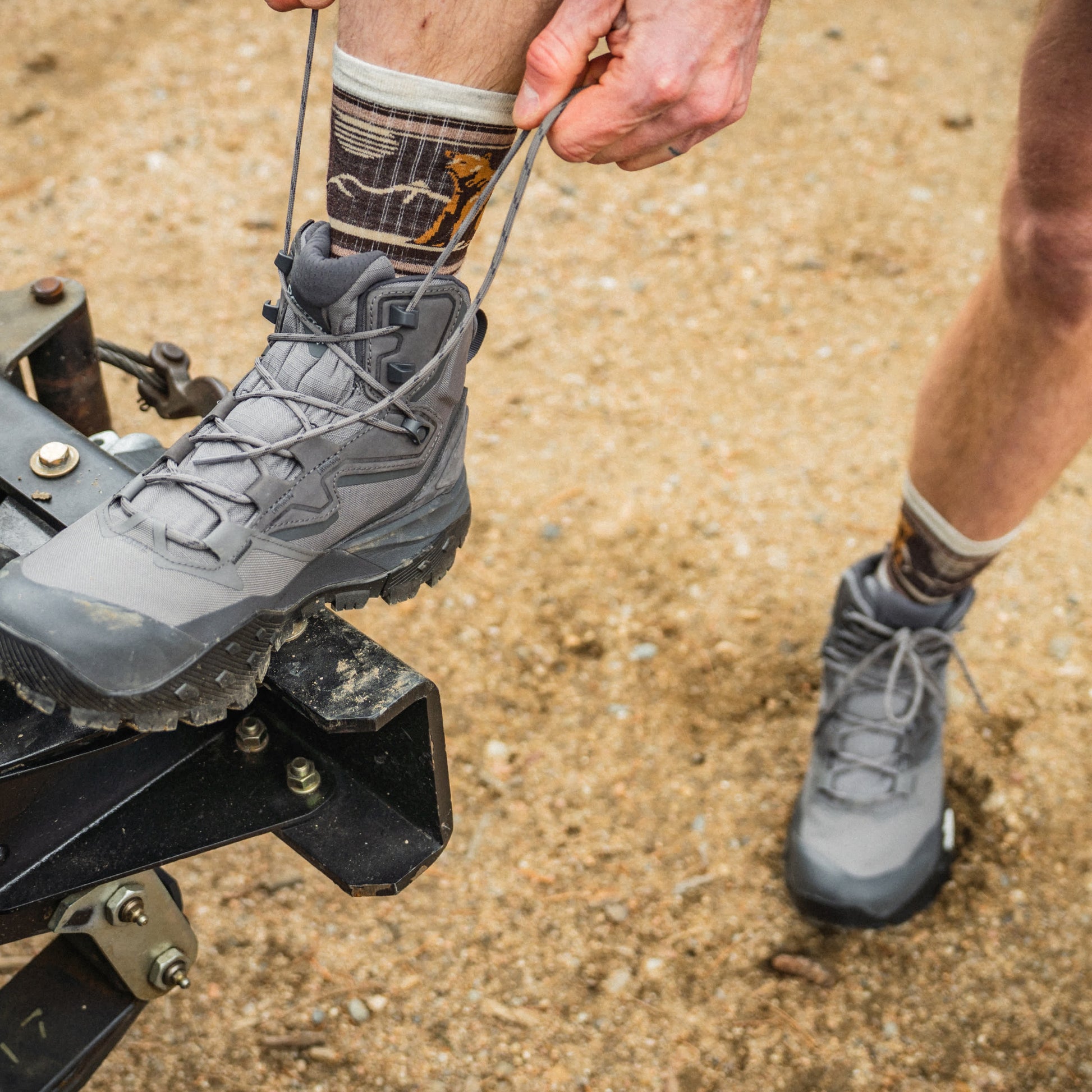 We've never met a trail we didn't like. The same goes for our Hike Targeted Cushion Bear Stripe Mid Crew Socks. With precise cushioning where you need it most, this is the pair that helps every mile feel good. The 4 Degree Elite Fit System offers a performance fit with strategic stretch and mesh zones to promote breathability while helping protect against blisters. Plus, Indestructawool technology adds durability, and the unique design makes a statement on the trails. So no matter how far you hike, this pair's ready to help you go farther.