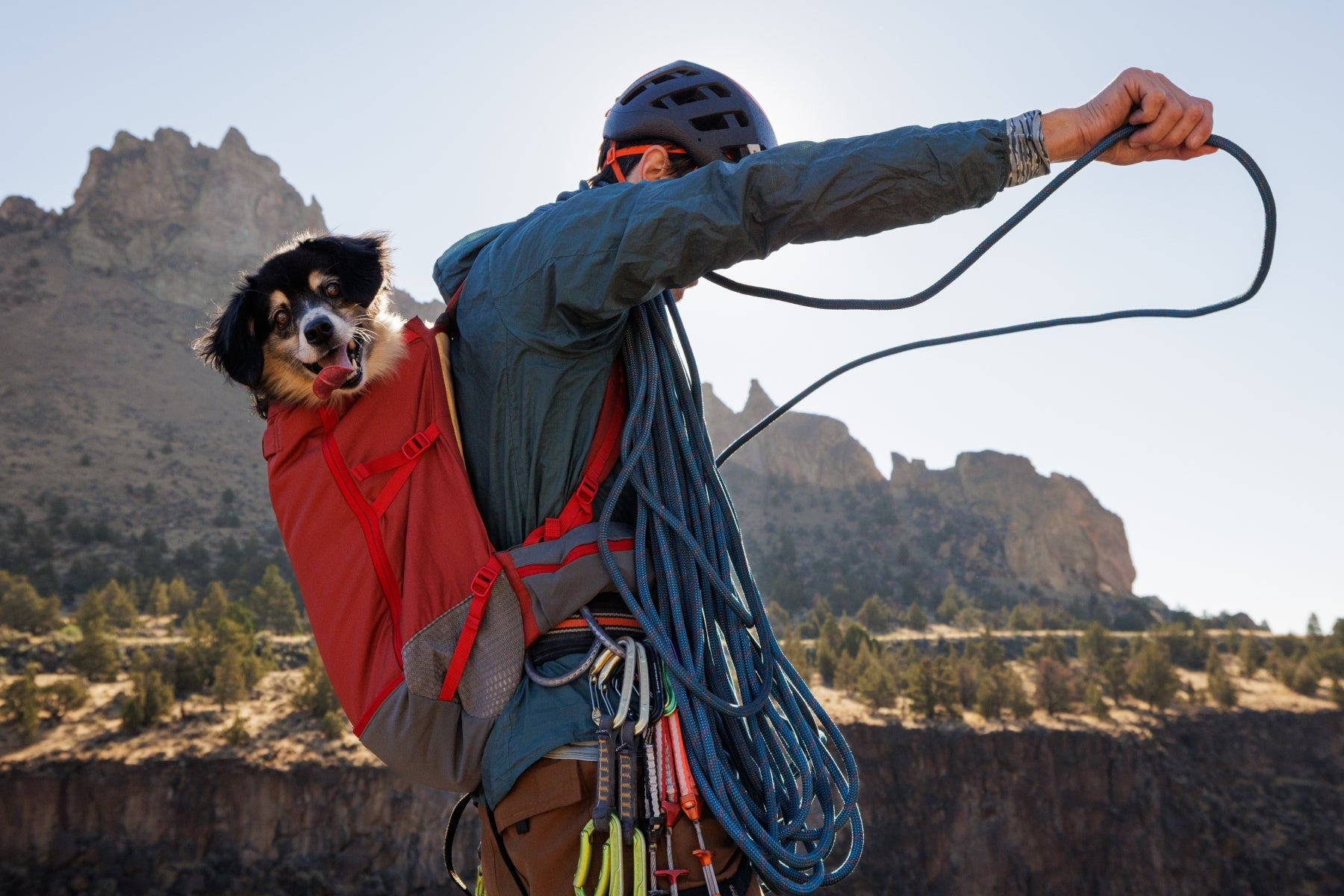 Share even more adventures with your canine sidekick with the Hitch Hiker Dog Backpack Carrier – a lightweight, technical dog carrier designed so dogs can hitch a ride when needed. The dual locking zippers create a wide opening for easy loading and unloading between trail time and backpack time. Once in the pack, the integrated harness keeps dogs secure and allows them to get comfortable and face forward to see the trail ahead. Cinch straps add extra security and keep dog close to your back when loaded. Air mesh side panels at the base boost air flow for temperature management.