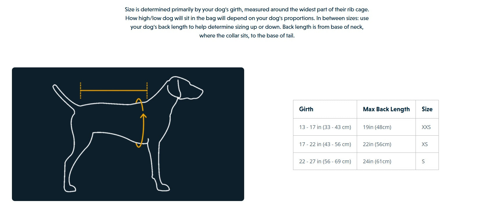 - Sizing based off girth measurement; comfortably accommodates dogs up to 40 lbs