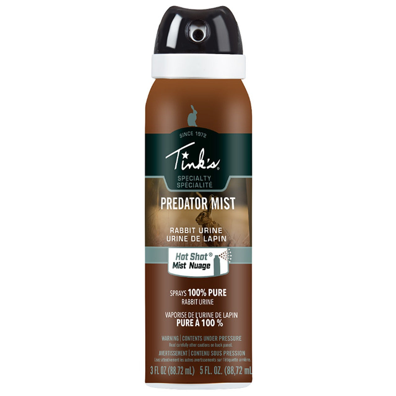 Whip predators into a frenzy with the Hot Shot Predator Mist featuring pure rabbit urine! The powerful, fine mist is perfect for long range attraction. This Hot Shot Mist utilizes Bag-in-Can technology that separates the product from the pressurizing agent for zero contamination. This system enables the entire product to be dispensed - no waste! Sprays longer than traditional aerosol-powered sprays. Even sprays upside down! Includes locking feature to prevent unintentional actuation.