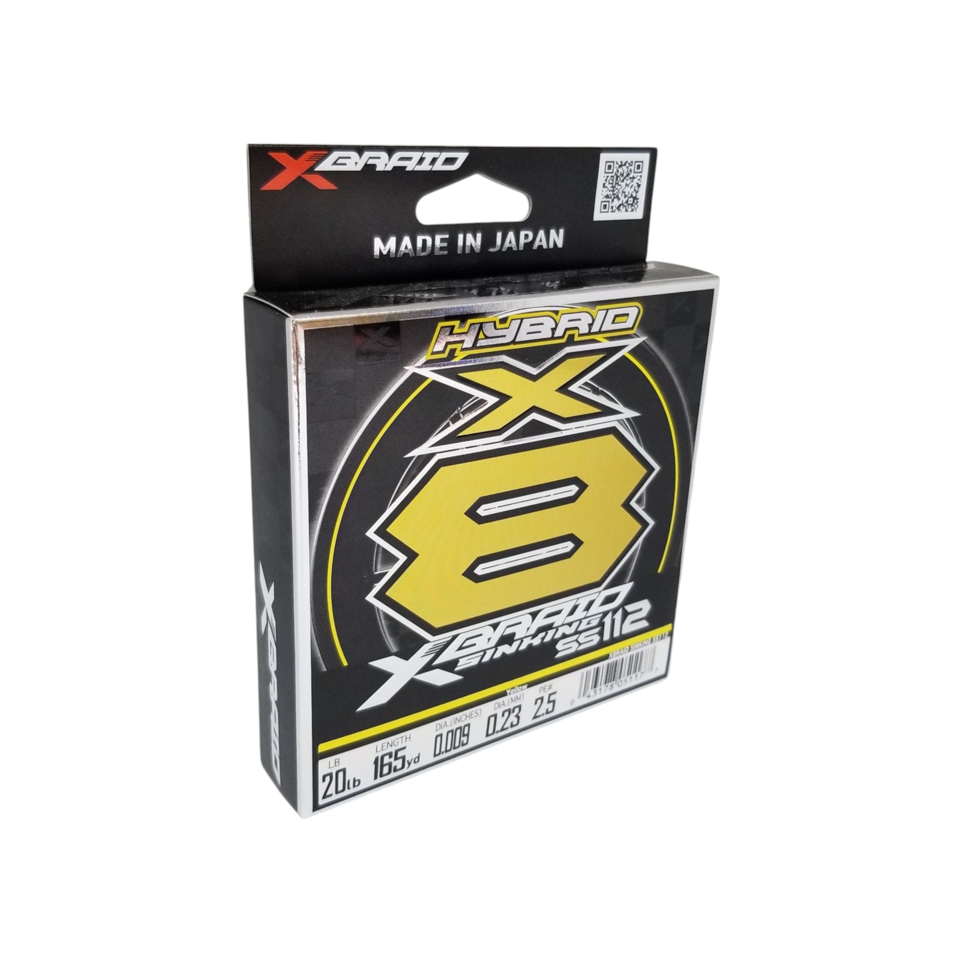 The XBraid 20 lb. test Hybrid X8 Sinking SS112 Braided Line is 165 yards of braided line and features four strands of braid line and four strands of Ester line that are masterfully woven with XBraid's exclusive WX weaving system. This is a great choice when fishing mid-column or bottom oriented techniques as it will reach fish faster and with more sensitivity. Fly-lined live baits will be able to reach saltwater gamefish faster and more naturally while fans of the drop-shot technique will achieve faster access to lethargic fish in deep water. Forward facing sonar enthusiasts will finally have the right line to present a mid-strolled lure in the most appealing way possible.