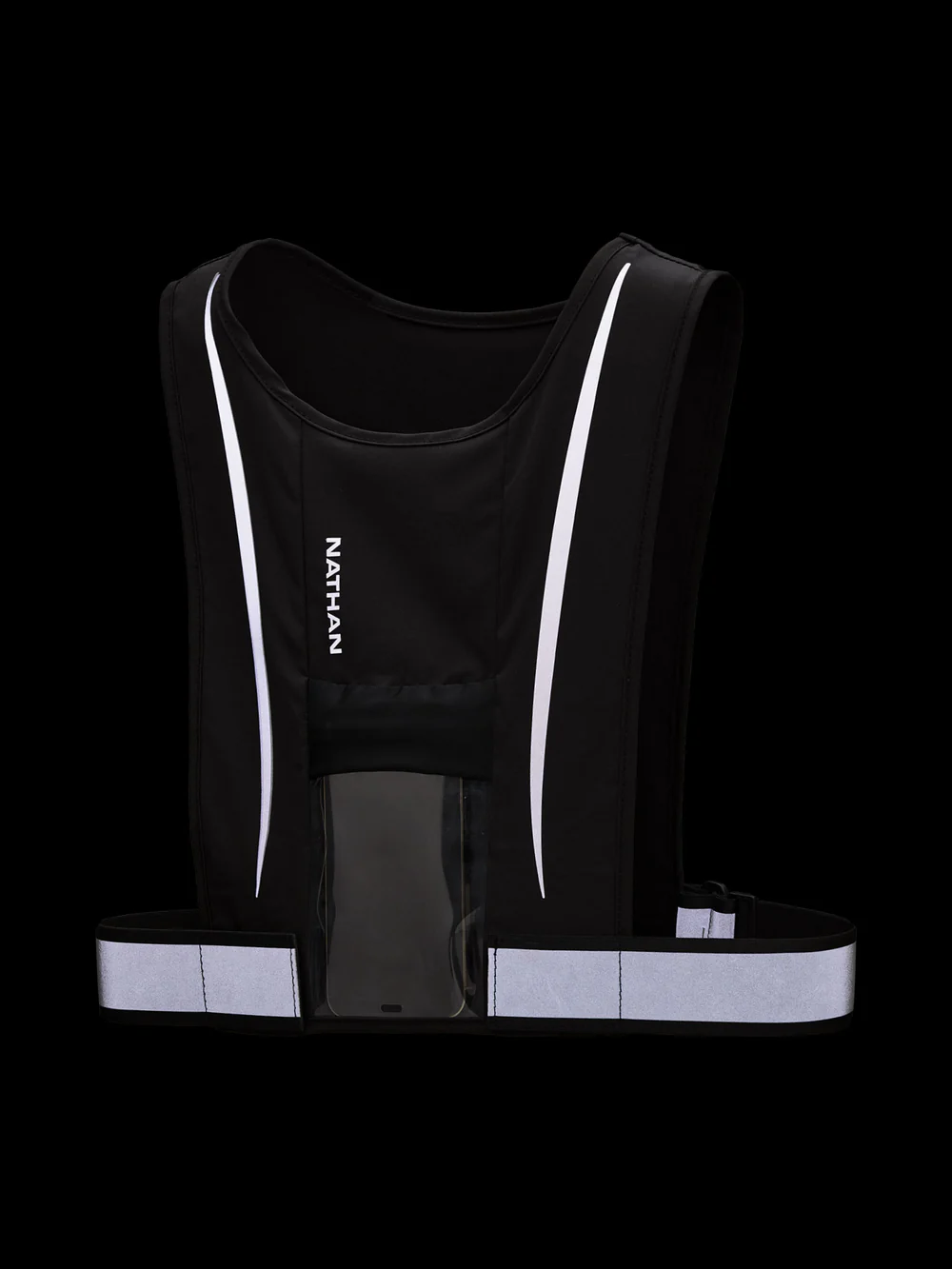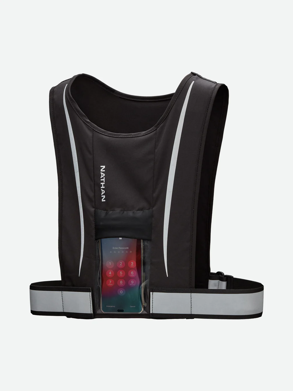 A unique reflective lightweight and stretchy knit vest that fits perfectly over your running gear and features a Clearview front pocket designed for Smartphones.