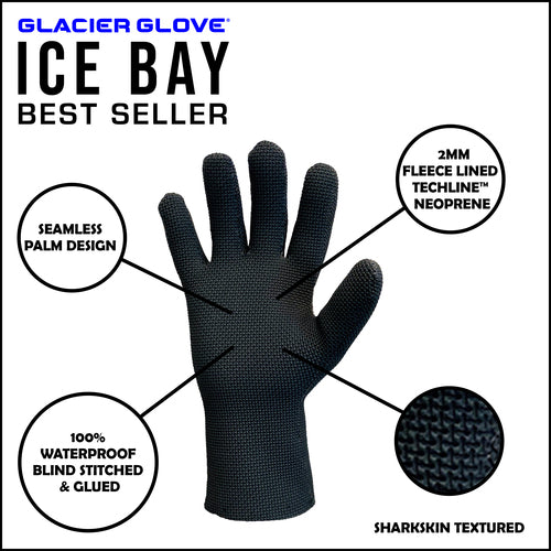 - MAXIMUM COMFORT: The Ice Bay is one of our warmest and most popular waterproof gloves. Built with our highest-quality neoprene for a great fit and feel, this glove also features a fleece lining for warmth.