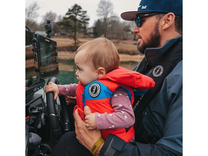 This front-entry Mustang Survival Lil Legends Infant Life Jacket keeps your smallest family members safe when on and in the water. Ultra-soft, stain-resistant outer fabric, ventilated mesh back, and moisture-wicking liner mean you’ll have a happy camper all day long. The zipper and buckle closure with the leg strap creates a secure fit. The head cradle with grab loop provides extra comfort and safety, while the reflective accents ensure visibility.