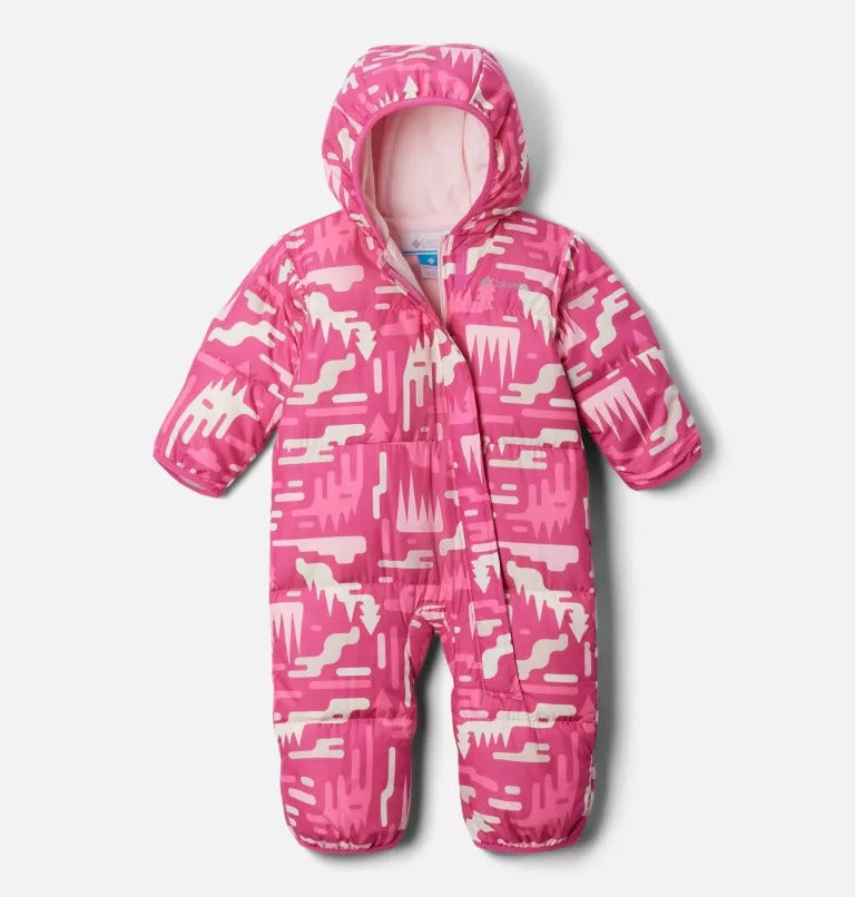 Keep your snow bunny warm and toasty in this insulated bunting featuring water-resistant fabric and soft microfleece lining at the hood and sleeves