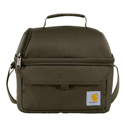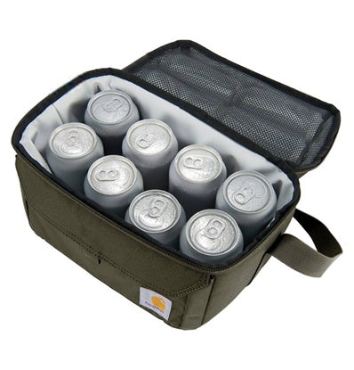 This Carhartt cooler keeps food and beverages cold for 8+ hours. It's made with Rain Defenderr fabric and has room for 12 cans. A top compartment allows you to store dry items separately. It's made with Rain Defender r to shrug off light rain. A front pocket holds condiments or cutlery.