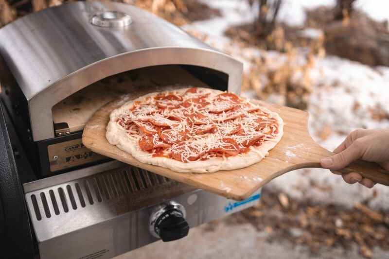 The Camp Chef Italia Pizza Peel simplifies artisan pizza preparation. Simply dust the peel with flour, spread your pizza dough out and add toppings. Your pizza creation will then glide into your pizza oven with ease, just like a true artisan! A pizza peel is essential when creating your own homemade artisan pizza.