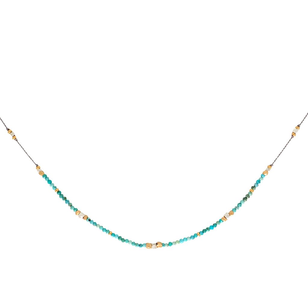 Is it just us or are you craving something a little more lavish to pull out of your jewelry box? Delicate faceted orbs of turquoise interspersed with spacers of sterling silver and 24 karat gold vermeil sit proudly at your throat chakra creating an elegant yet casual, everyday look. This necklace was designed to be worn alone or layered with our Crescendo necklace and or our Treadlight necklace for the sweetest Bronwen ensemble that will charm you for years to come.