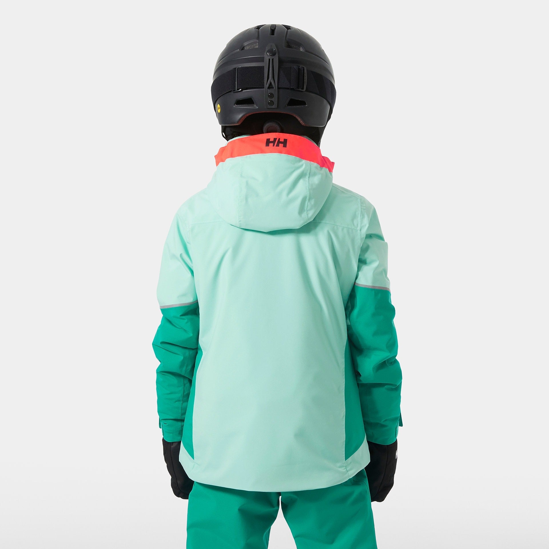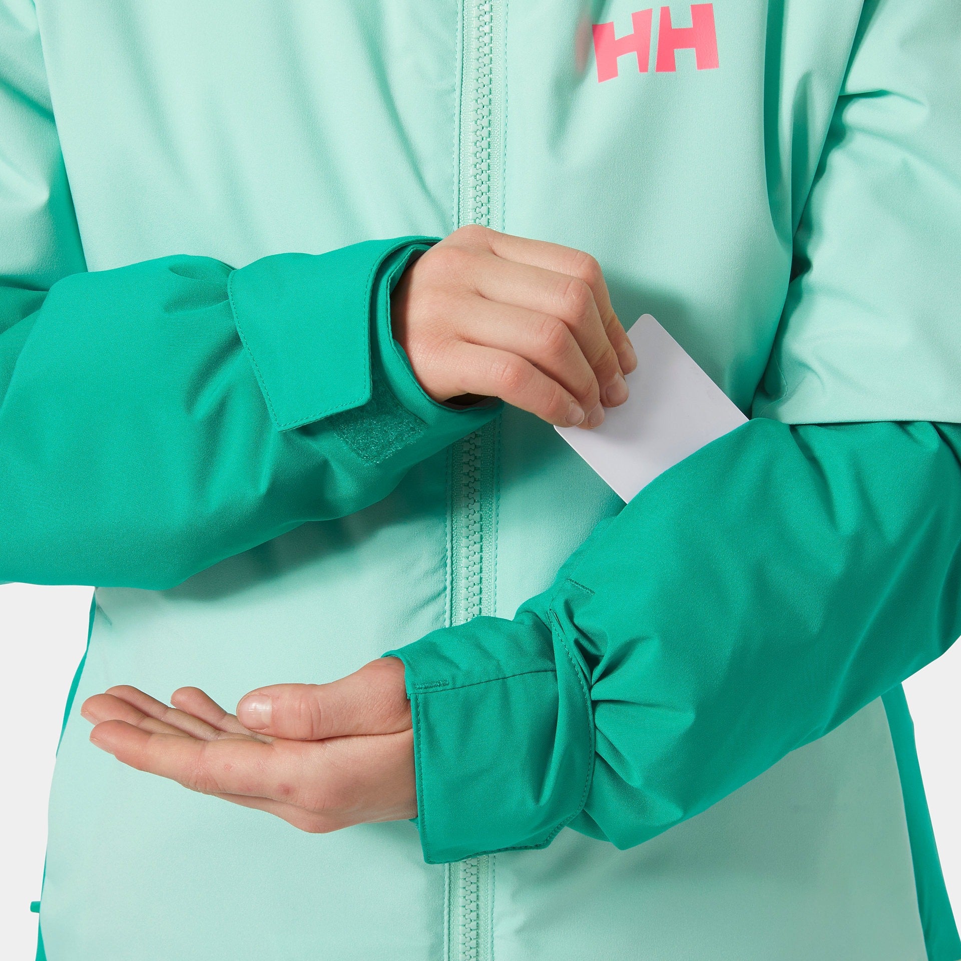 This stylish performance ski jacket gives junior girls the weatherproofing and warmth they need to take on the resort slopes. With our trusted HELLY TECH® Performance construction, the Quest is waterproof/breathable and wind resistant. PrimaLoft® BLACK Eco insulation keeps young trail blazers warm. A trim, articulated cut looks chic and gives you the freedom of movement you need to rock the slopes. Additional details include neon and reflectives for visibility, a ski pass pocket, a detachable hood, adjustable hem and a powder skirt. This jacket is made with recycled content.